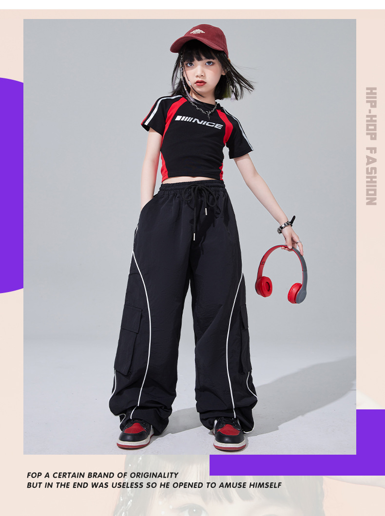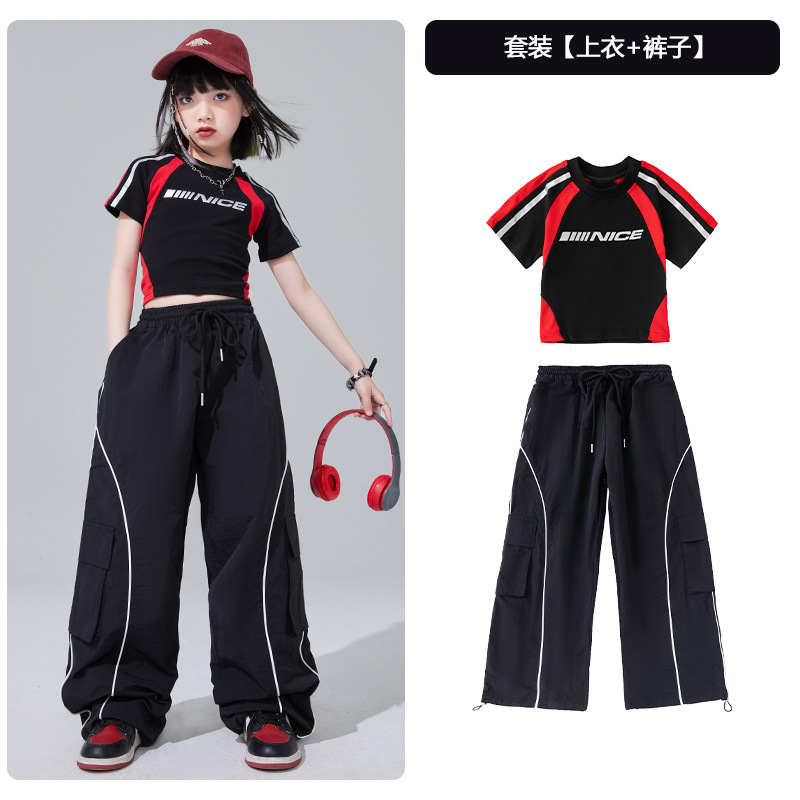 • JA19 소녀 빨간색과 검은 색 짧은 T