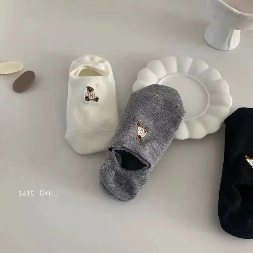 여름 미끄럼 방지 보트 양말 여성, 귀여운 우유 곰 얕은 입 보이지 않는 양말 만화 곰 Xia Chun은 바람을 원한다