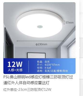 FSL 불산 조명 LED 인간 적외선 계단 복도 자동 유도 3 방지 감광 천장 램프스토어 가기