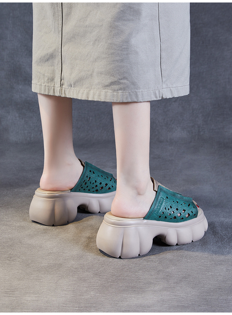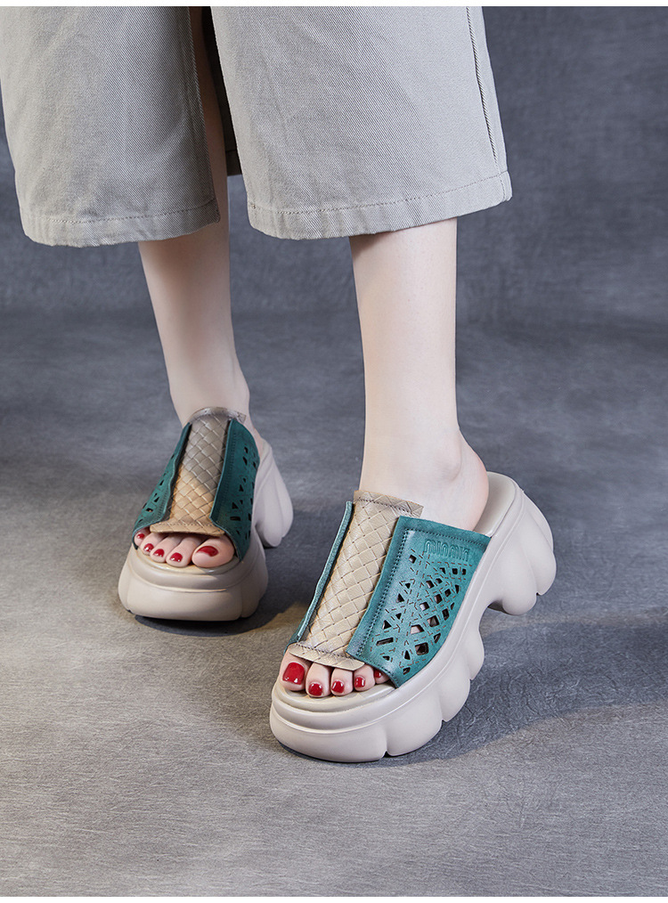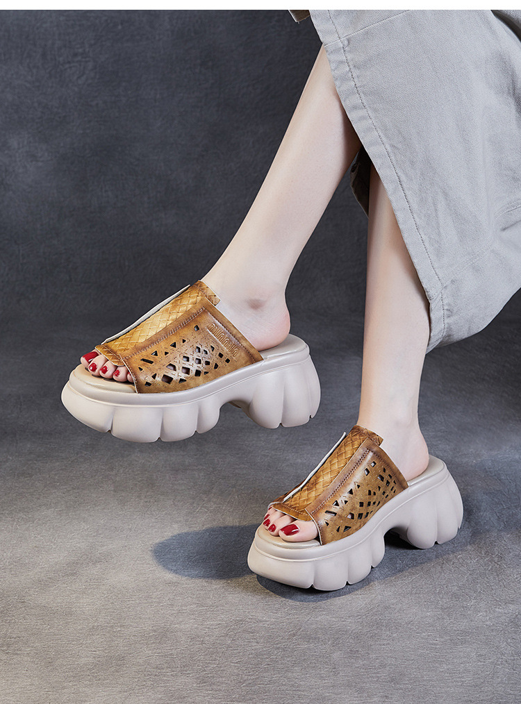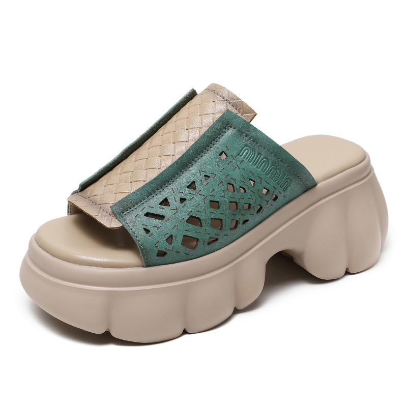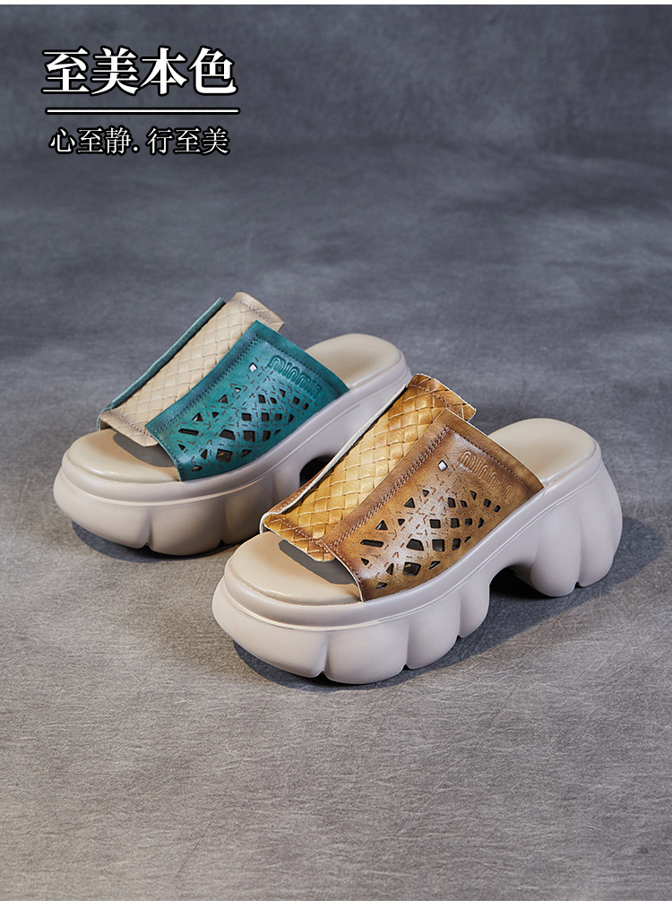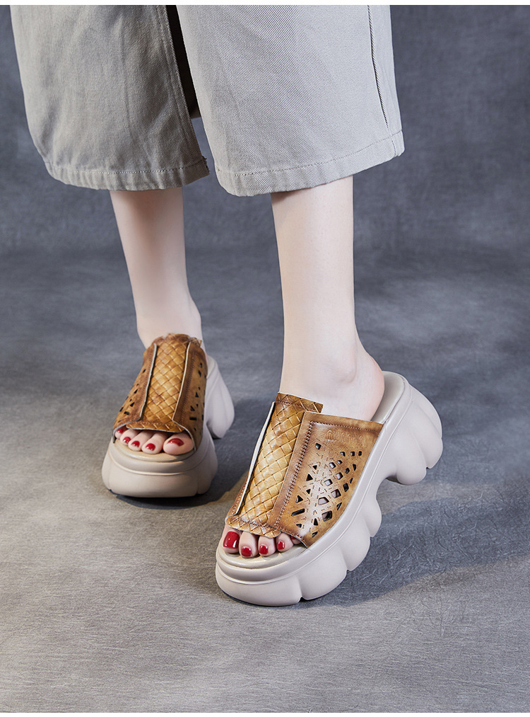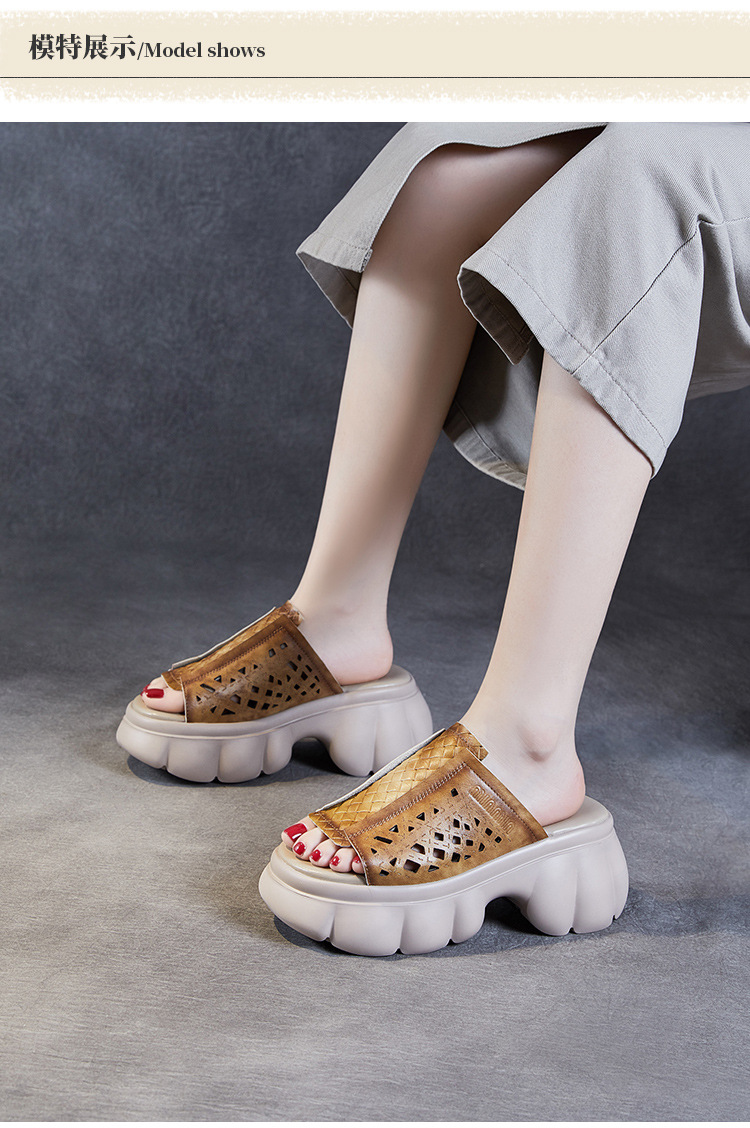 2024 여름 하이힐 민족 스타일의 통기성 겉옷 슬리퍼