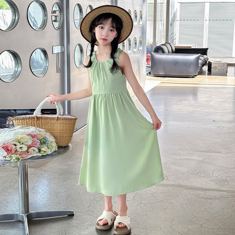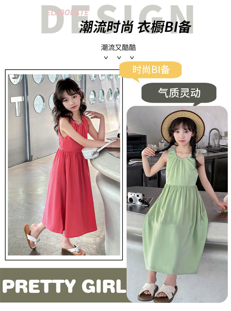 소녀 여름 원피스 2024 새로운 스타일 어린이 여름 유행 조끼 소녀 여름 얇은 치마스토어 가기