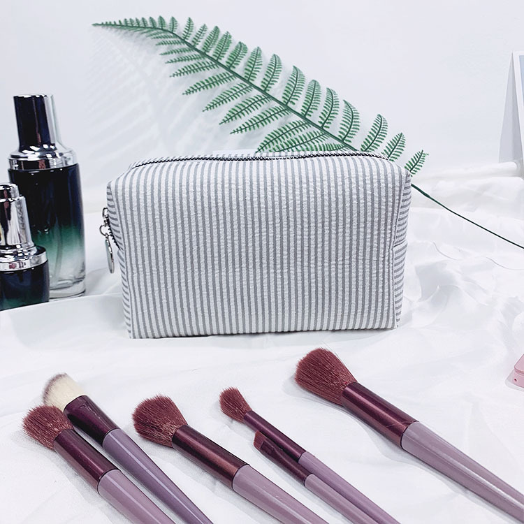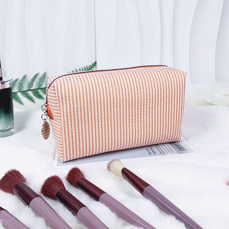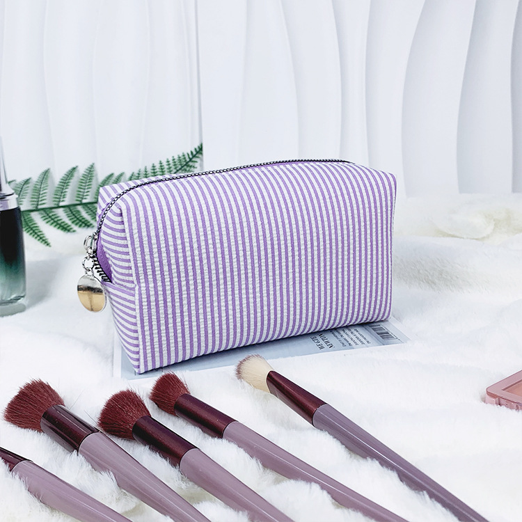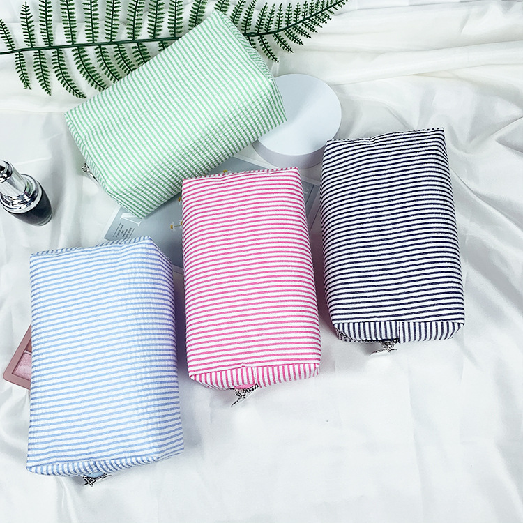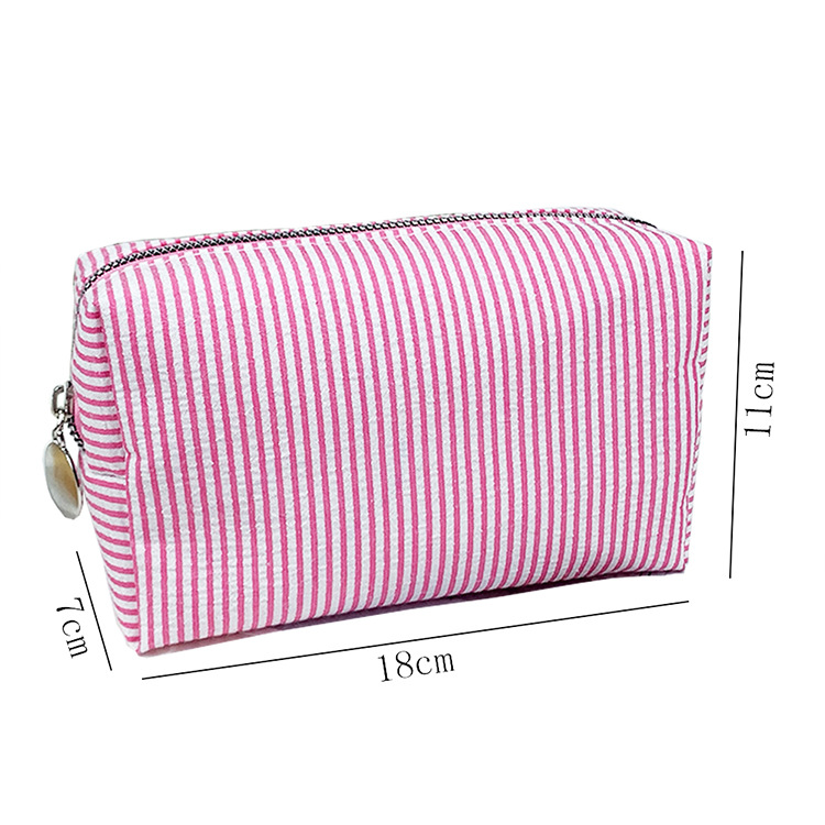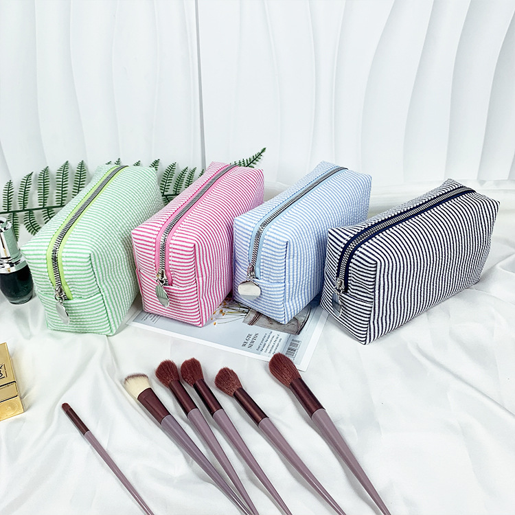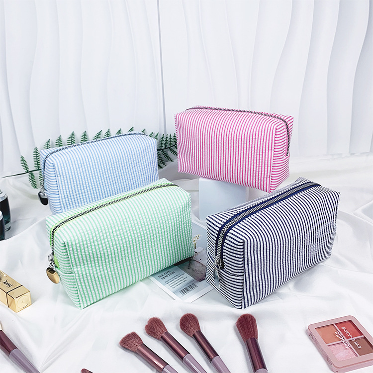 국경 간 뜨거운 판매 Seersucker 화장품 가방 인도 핸드 대용량 워시 백 자수 줄무늬 여행 보관 가방