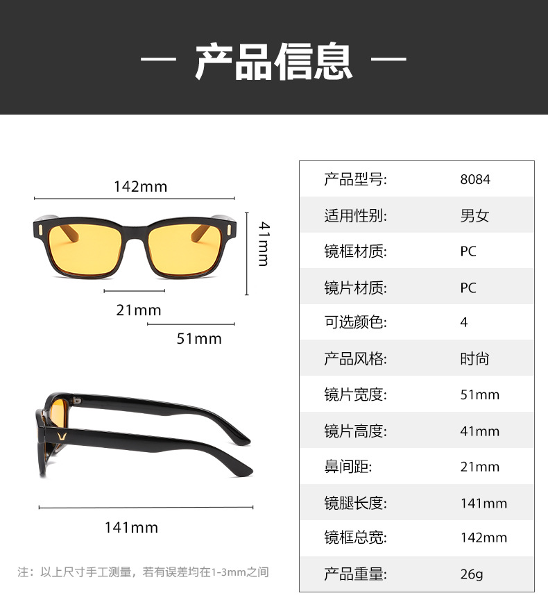 새로운 풀 프레임 V 패션 선글라스 정사각형 개성 안티 블루 안경 8084 도매 남성과 여성스토어 가기