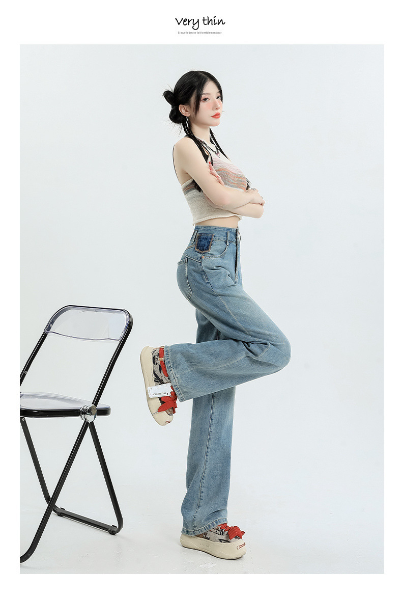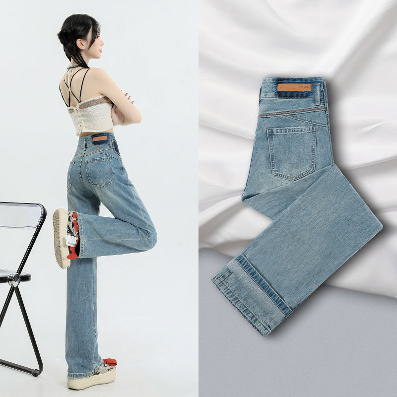 하이 허리 청바지 여성용 트렌디 한 올매치 얇은 새로운 스트레이트 루즈 슬림 핏 래핑 여성을위한 좁은 와이드 레그 바지스토어 가기