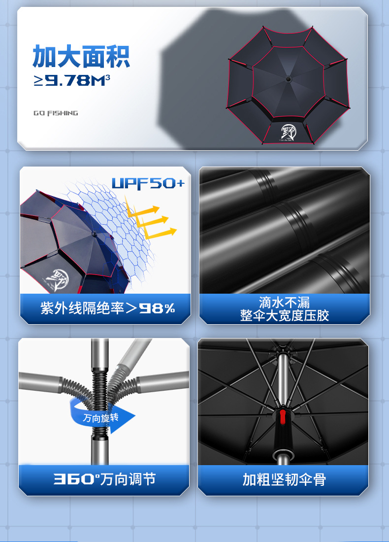 새로운 대형 낚시 우산 유니버설 야외 차양 방비 태양 방지 두꺼운 검은 고무 지팡이 우산 야생 낚시를위한 특별 낚시 우산