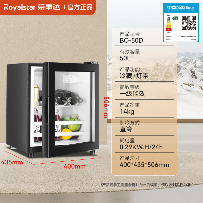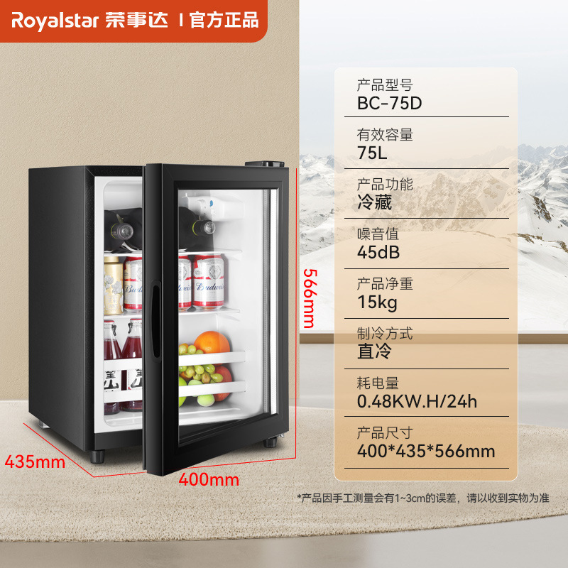 Rongshida 아이스 바 투명한 단일 도어 냉장고 가구 작은 냉동고 상업 사무실 차 음료 레드 와인 캐비닛스토어 가기