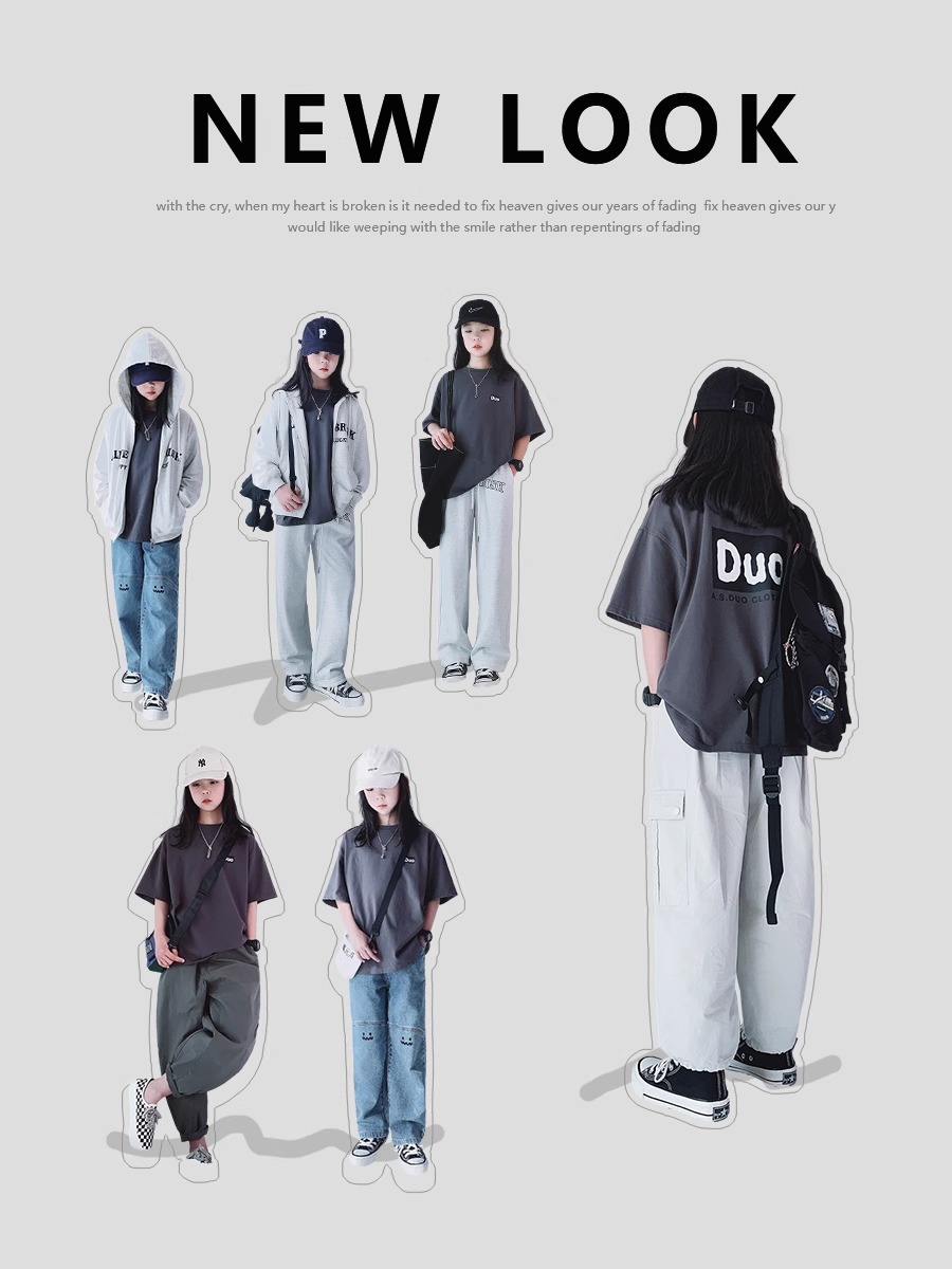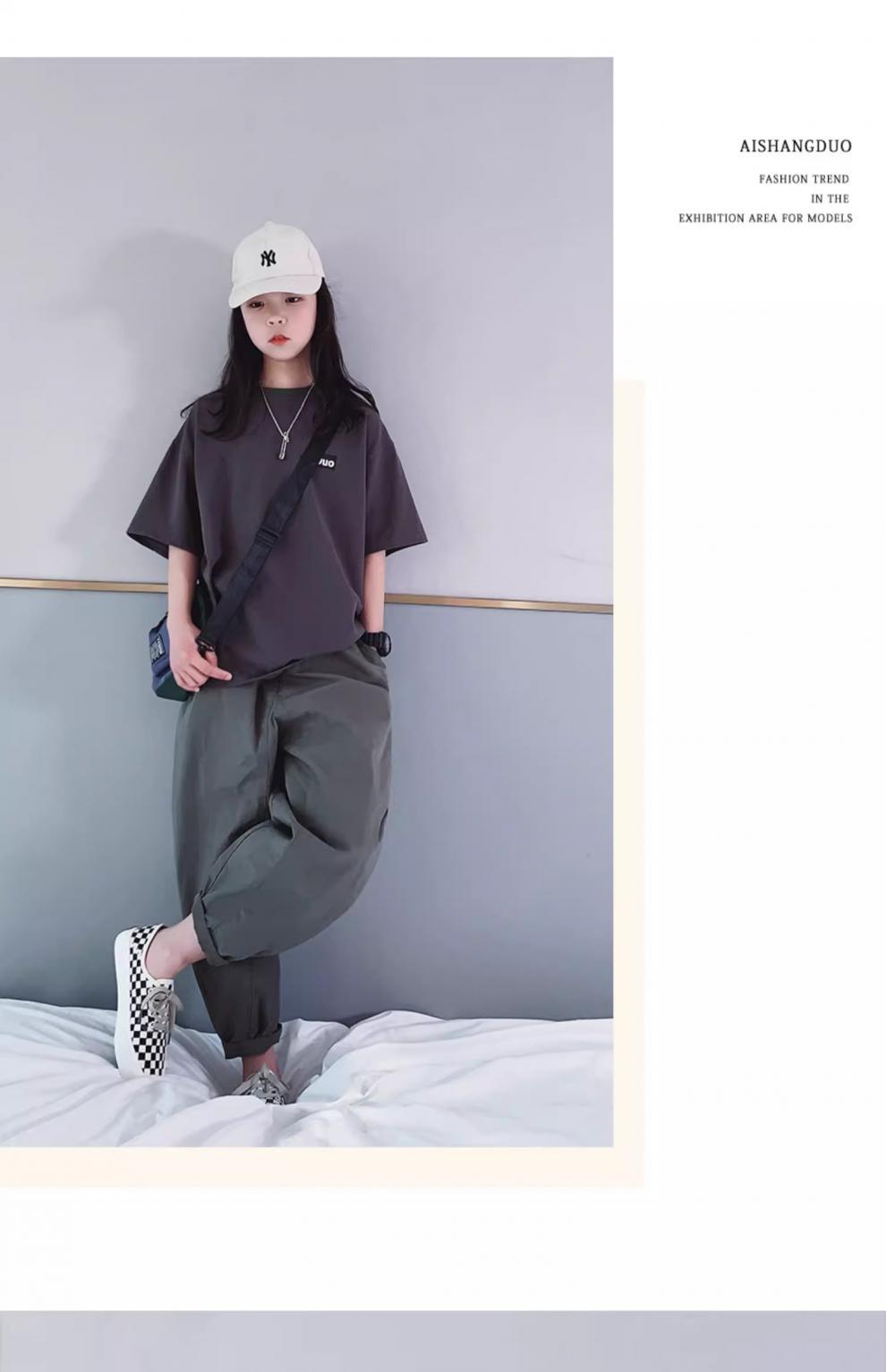 아동복 여아용 티셔츠 2024 여름 새 느슨한 반소매 아동용 티셔츠 서양식 반소매 탑스토어 가기