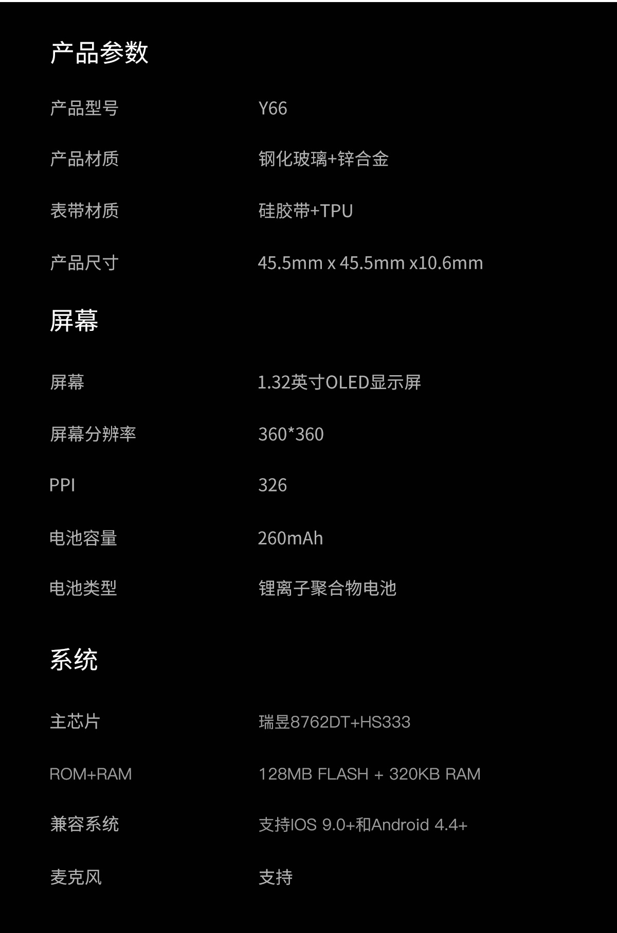 系统要求 IOS9.0 和安卓5.1,支持蓝牙4.0