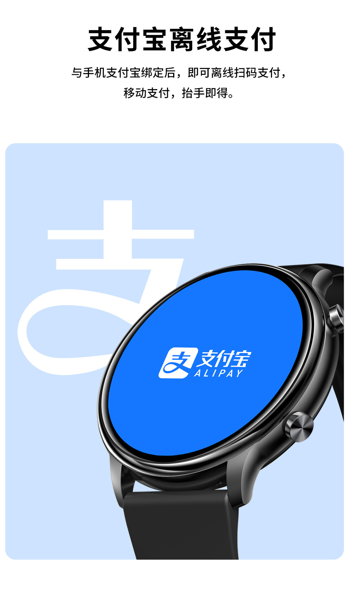 特殊功能 支持拨打电话和接通电话(通话功能)、体温,可兼容VC32真血氧,支付宝离线支付
