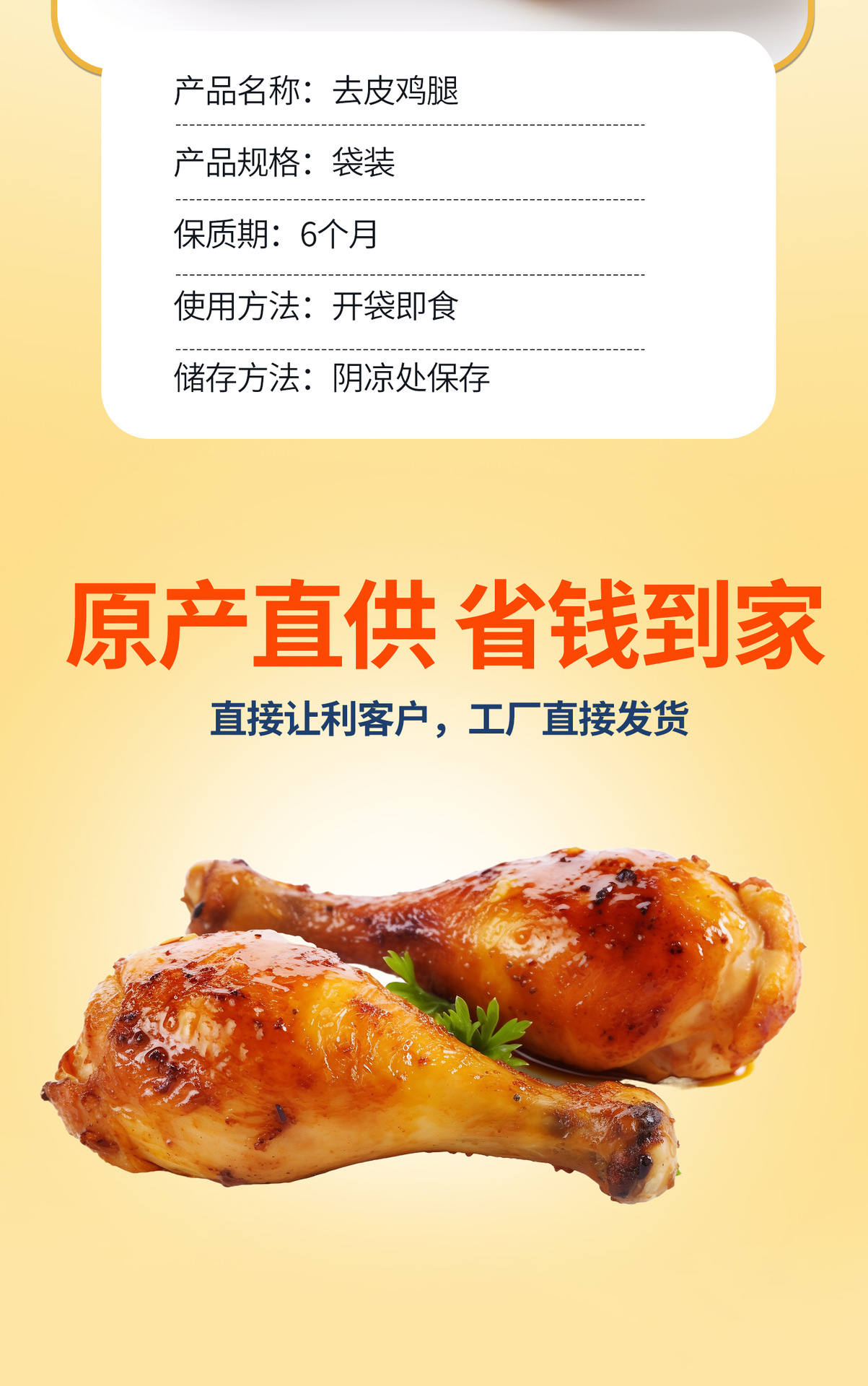 껍질이없는 닭 다리 인스턴트 오픈 백 인스턴트 큰 닭 다리 고단백 올리언스 닭 다리 고기 간식 피트니스 식사 대체 식품