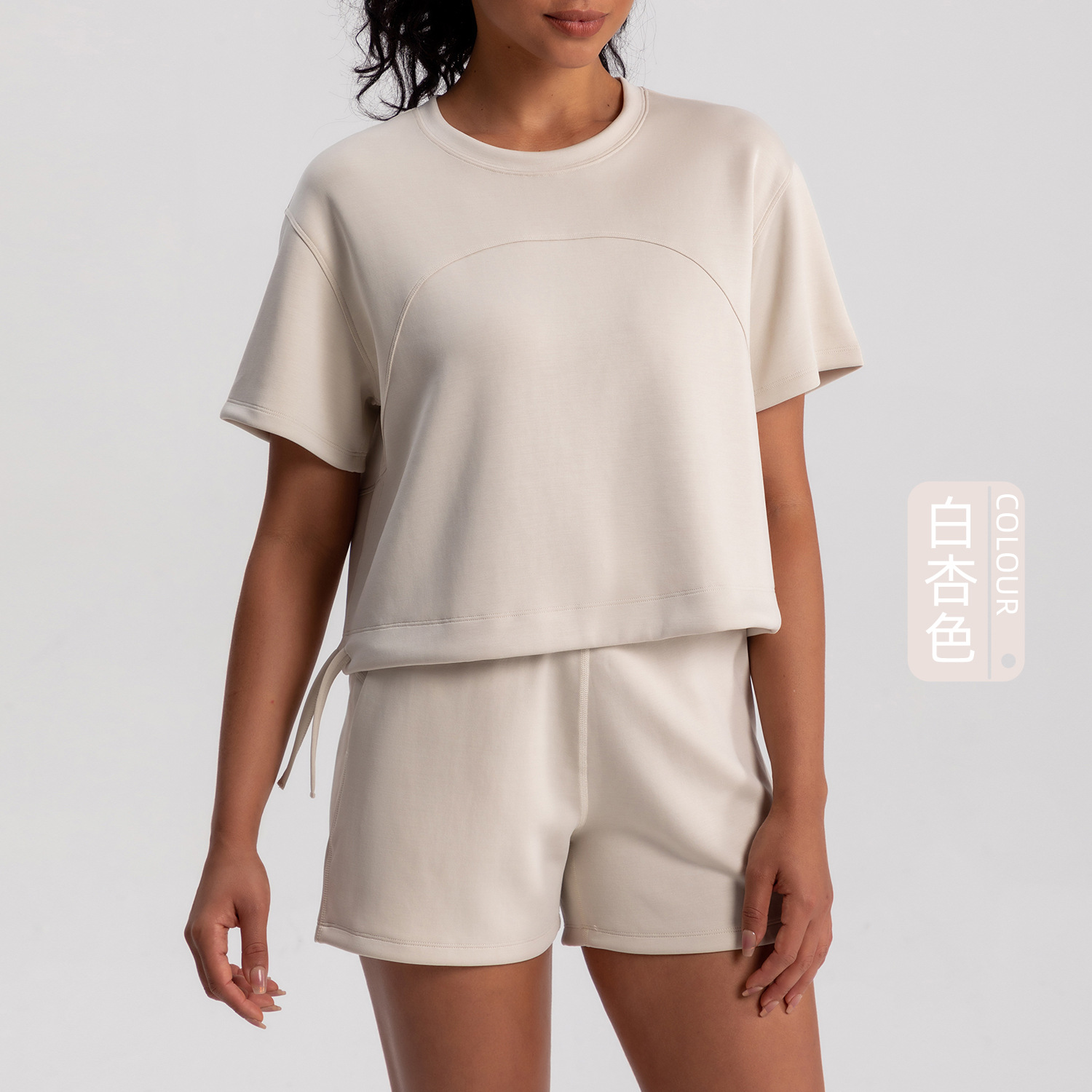 Athena lulu 요가 의류 여성용 샌드 워시 모달 플리츠 드로우 스트링 스포츠 티셔츠 러닝 피트니스 짧은 소매 탑