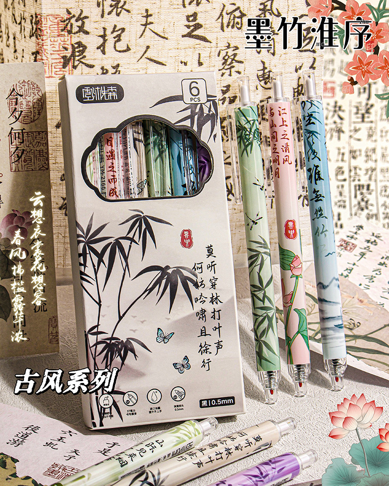 고대 스타일 높은 색상 가치 잉크 대나무 프레스 젤 펜 블랙 카본 펜 국가 스타일 클래식 중국 st 헤드 빠른 드라이 브러시 펜