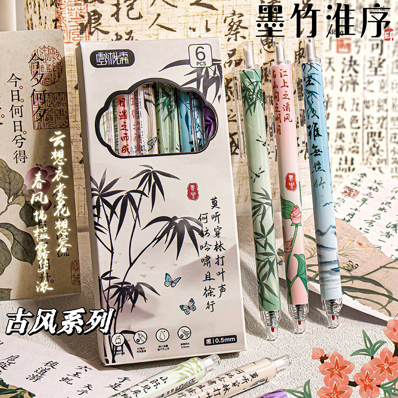 고대 스타일 높은 색상 가치 잉크 대나무 프레스 젤 펜 블랙 카본 펜 국가 스타일 클래식 중국 st 헤드 빠른 드라이 브러시 펜스토어 가기
