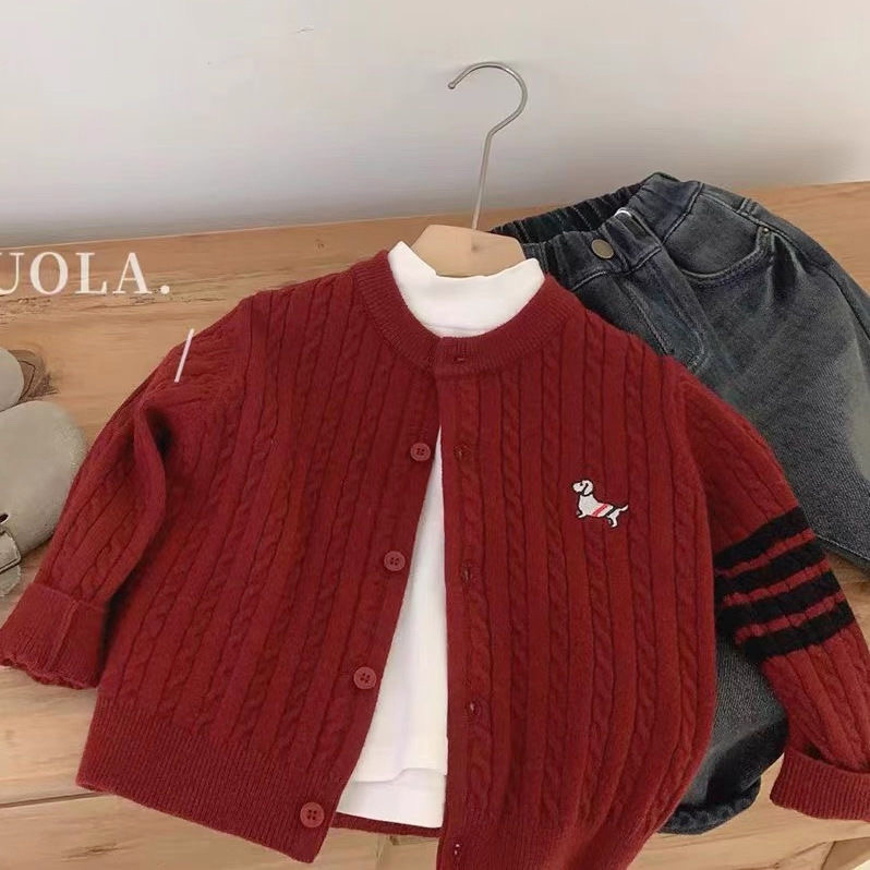 가을 겨울 신상 아동용 카디건 니트 스웨터 남녀 아동용 강아지 자수 꼬임 패턴 스타일리시 카디건 니트웨어스토어 가기