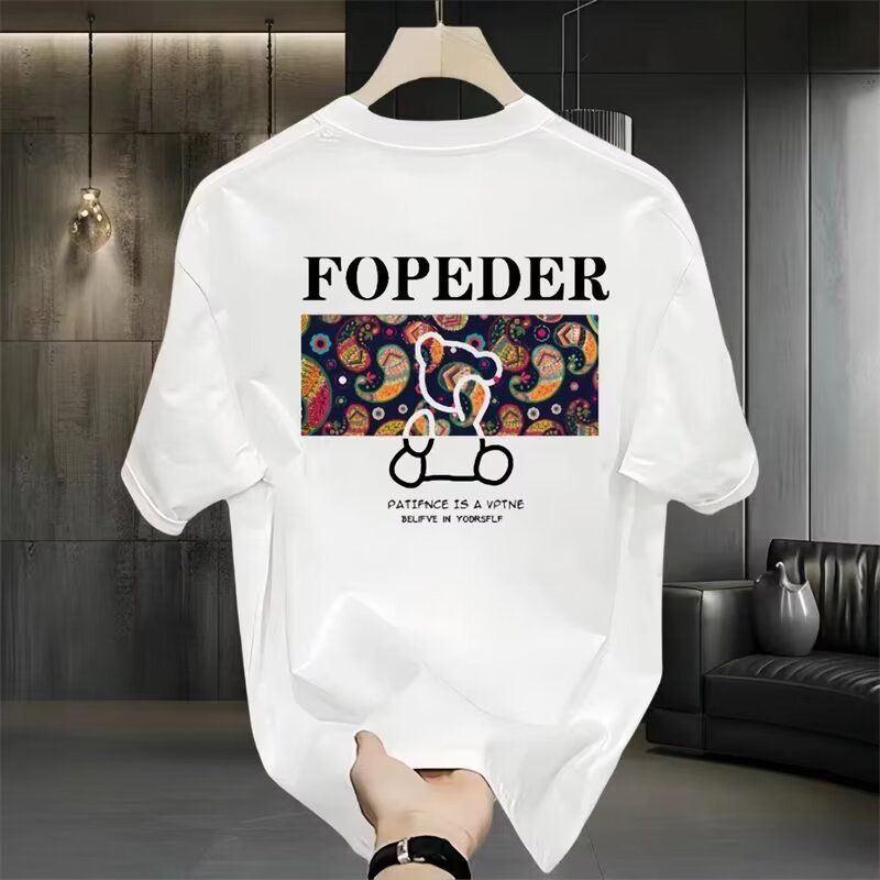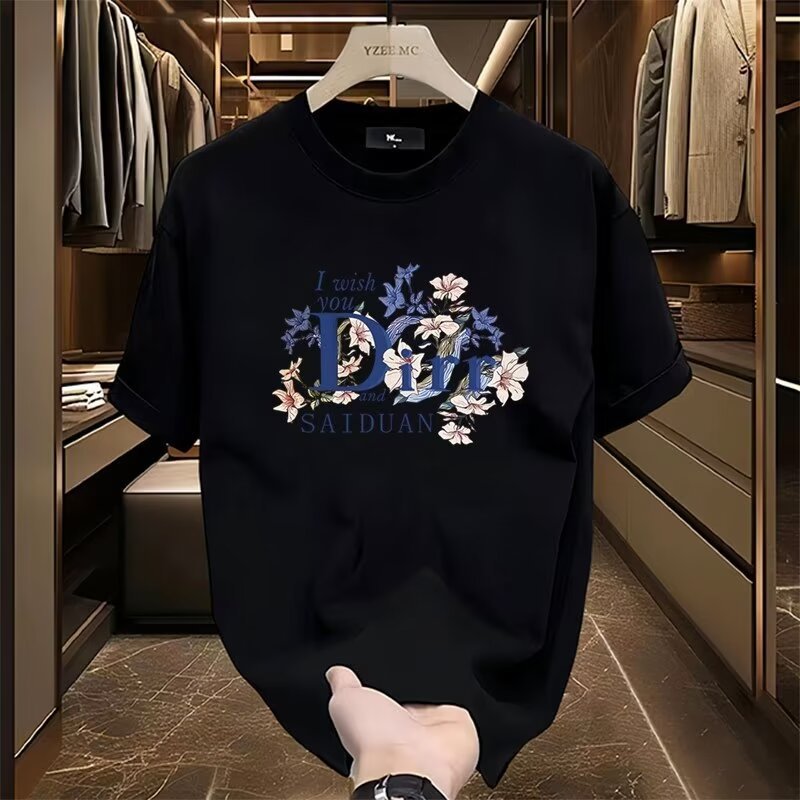 2024 여름 새로운 면 인쇄 티셔츠 남성 반 소매 라운드 넥 캐주얼 패션 짧은 소매 최고 트렌디 브랜드스토어 가기