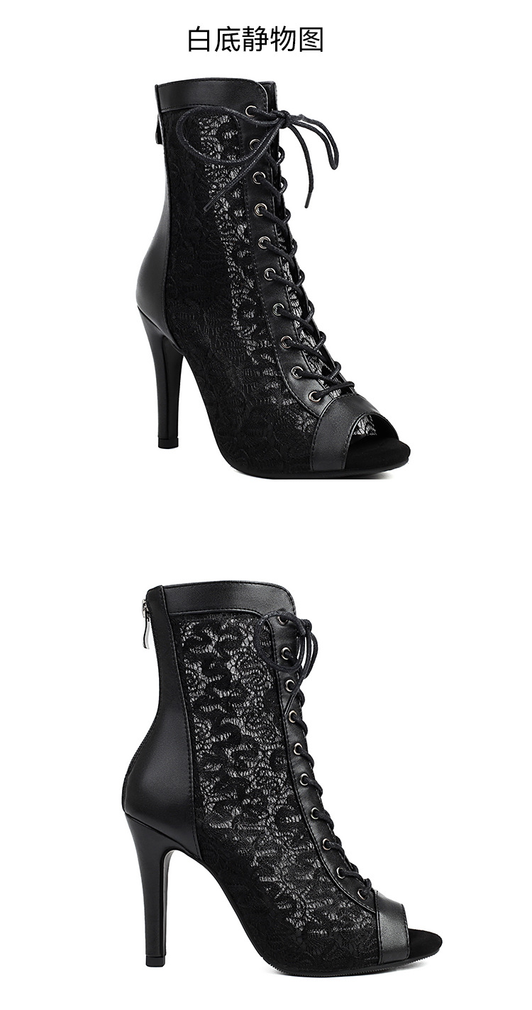 메쉬 샌들 여성용 여름 쇼트 부츠 할로우 레이스 업 메쉬 부츠 재즈 댄스 하이힐 댄스 피쉬 입 샌들 플러스 사이즈