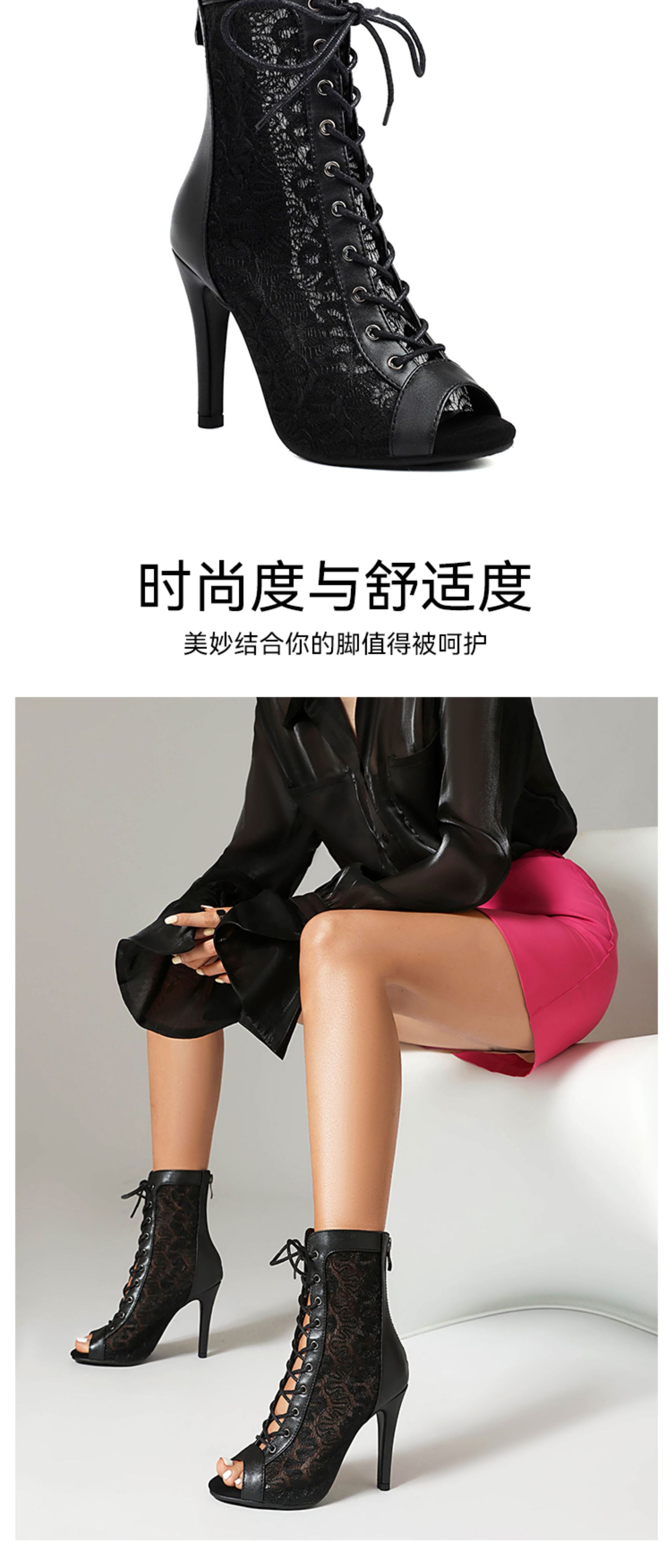 메쉬 샌들 여성용 여름 쇼트 부츠 할로우 레이스 업 메쉬 부츠 재즈 댄스 하이힐 댄스 피쉬 입 샌들 플러스 사이즈스토어 가기