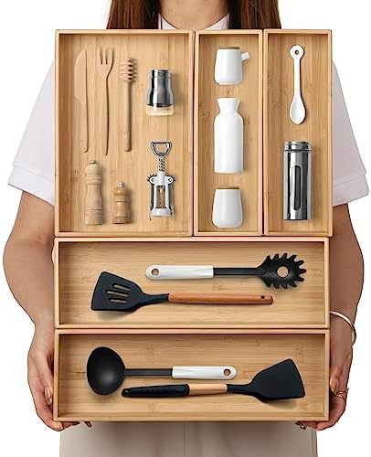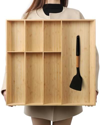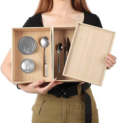 대형 대나무 서랍 저장 상자 긴 식기 접시 식기 실버 웨어 보관 상자 침실 욕실 거실스토어 가기