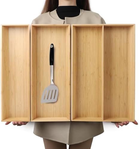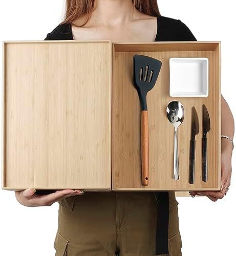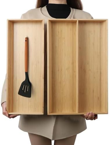 대형 대나무 서랍 저장 상자 긴 식기 접시 식기 실버 웨어 보관 상자 침실 욕실 거실
