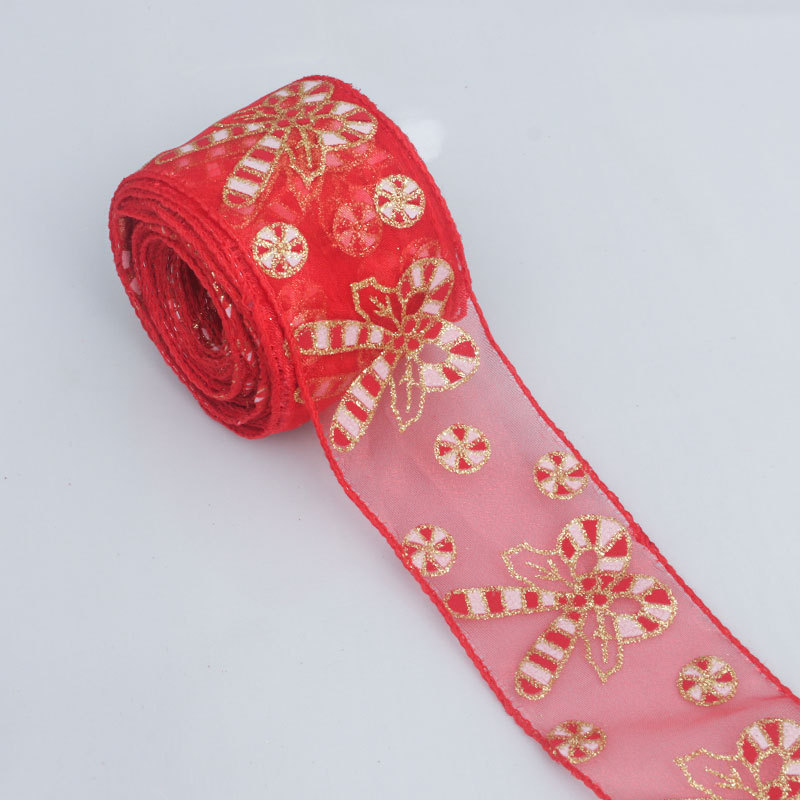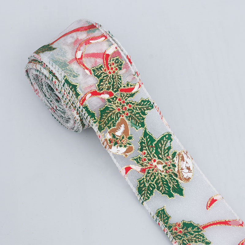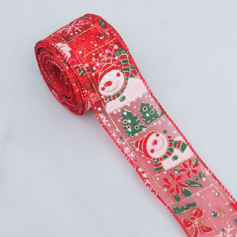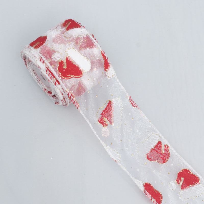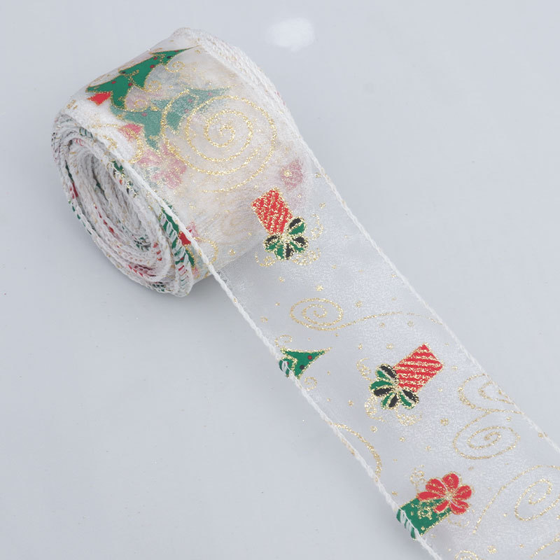 크리스마스 모조 린넨 화이트 모피 투명 웨빙 크리스마스 트리 화환 장식 리본 인쇄 크리스마스 빨간 자동차스토어 가기