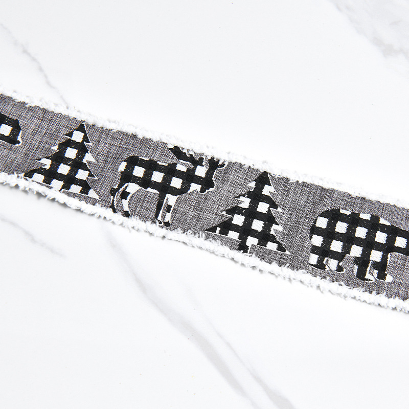 크리스마스 모조 린넨 화이트 모피 투명 웨빙 크리스마스 트리 화환 장식 리본 인쇄 크리스마스 빨간 자동차