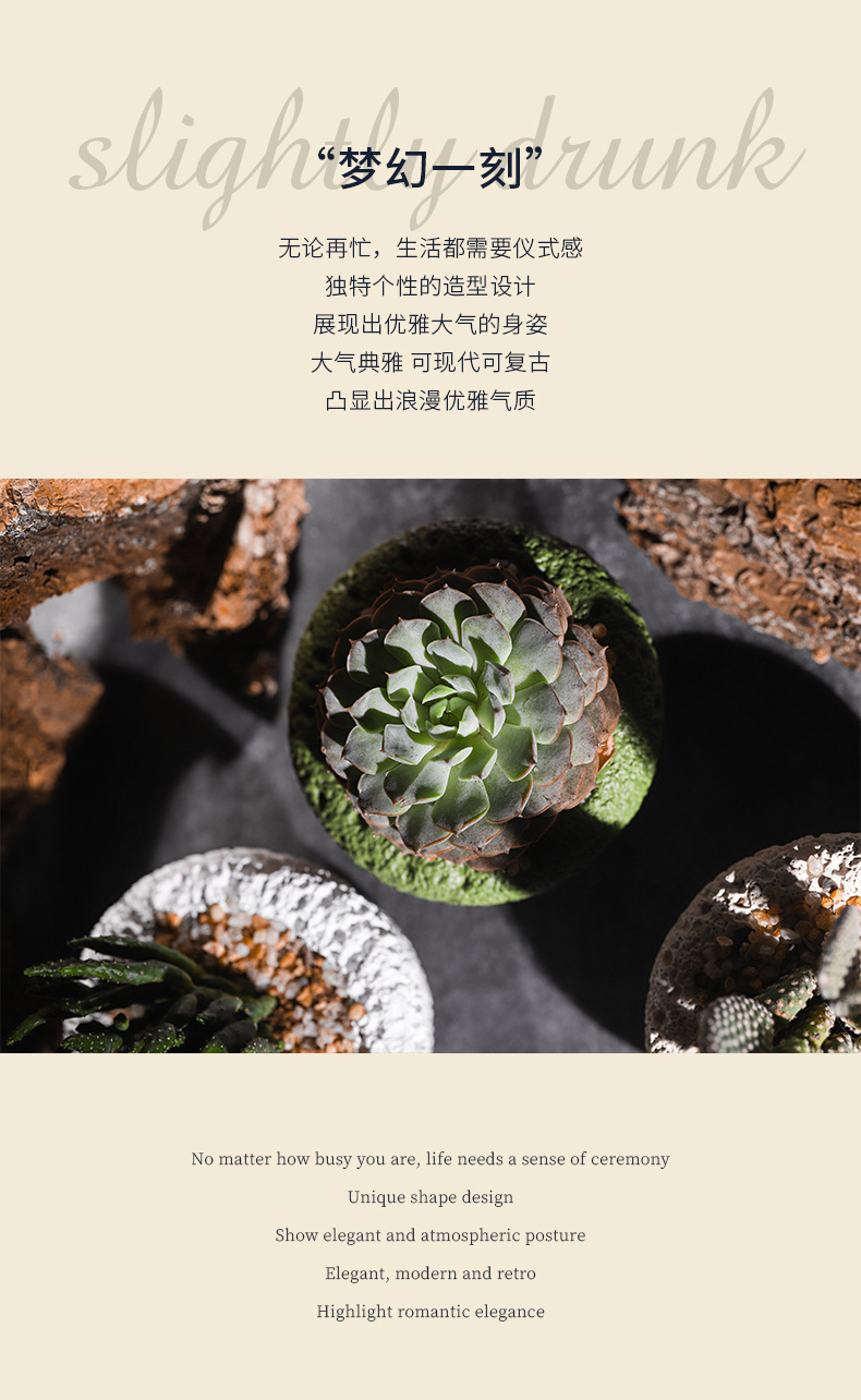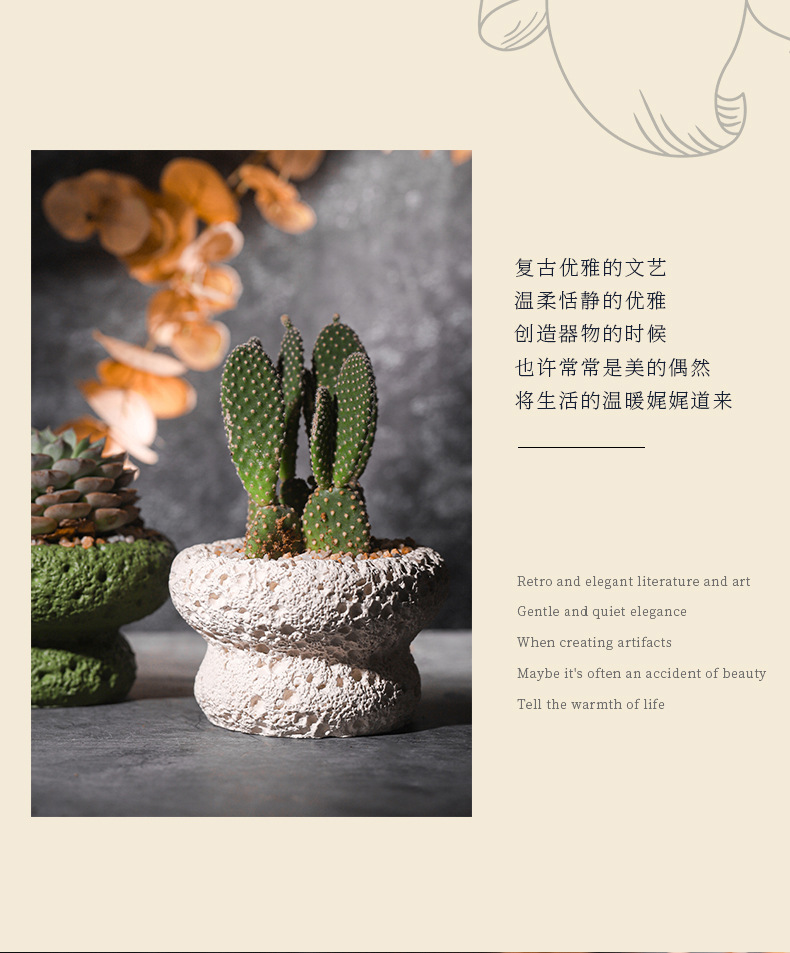 크로스보더 인플루언서 인스타 감성 운석 다육식물 화분 독창적인 디자인 시멘트 화분 화산 무늬 식물 제조업체 도매스토어 가기