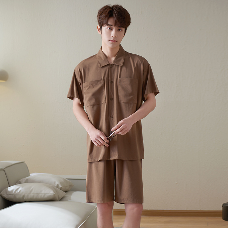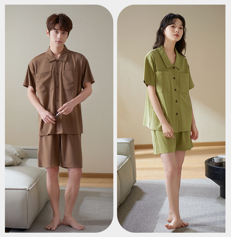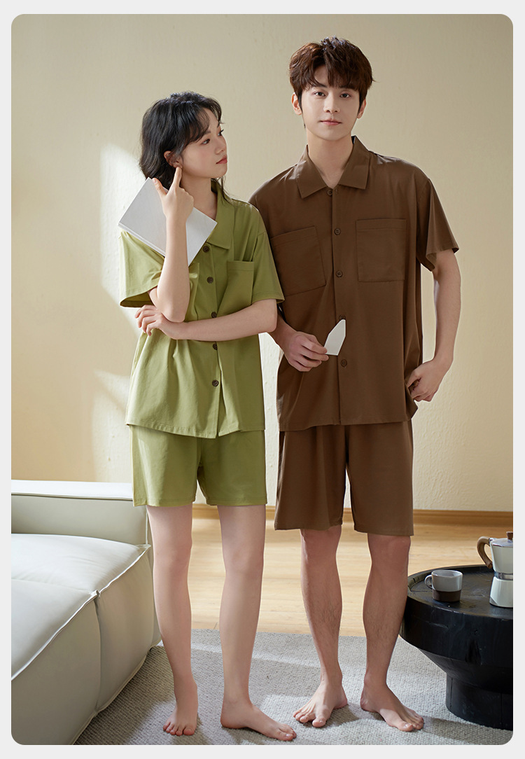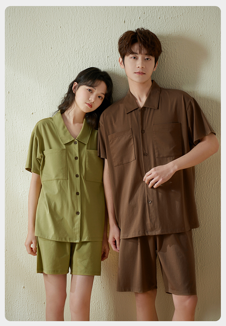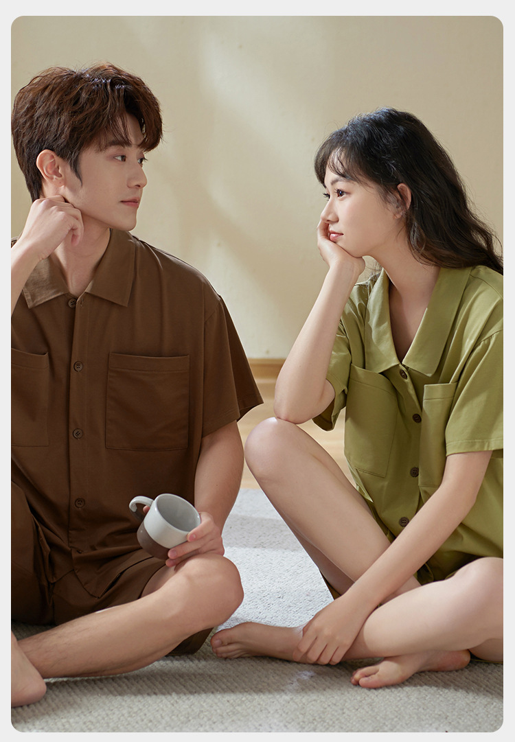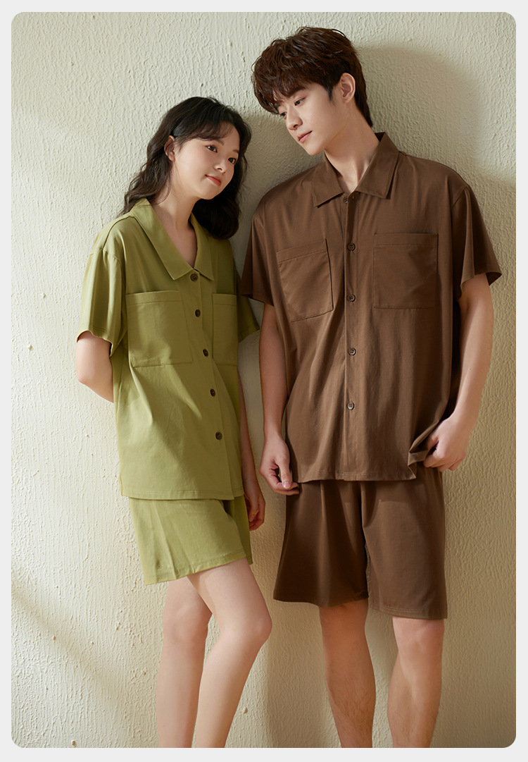 게으른 휴식 모리 커플 파자마 여름 반팔 반바지 구름 센스 코튼 편안한 소녀의 옷깃 카디건 홈 옷스토어 가기
