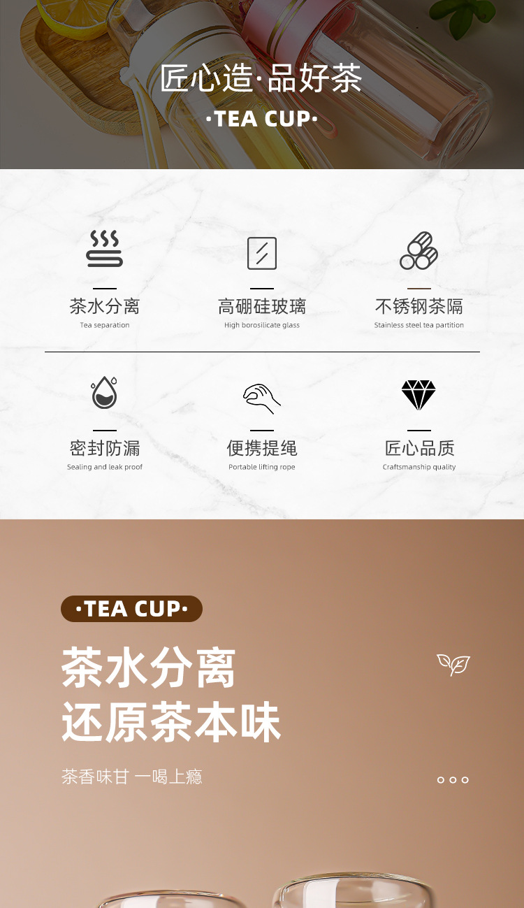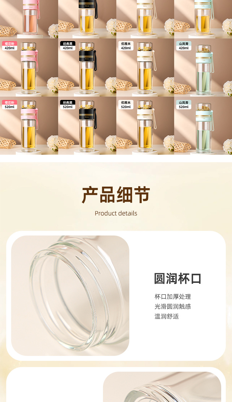 차 분리 컵 남성과 여성 차 유리 이중 절연 유리 컵 선물 컵 도매스토어 가기