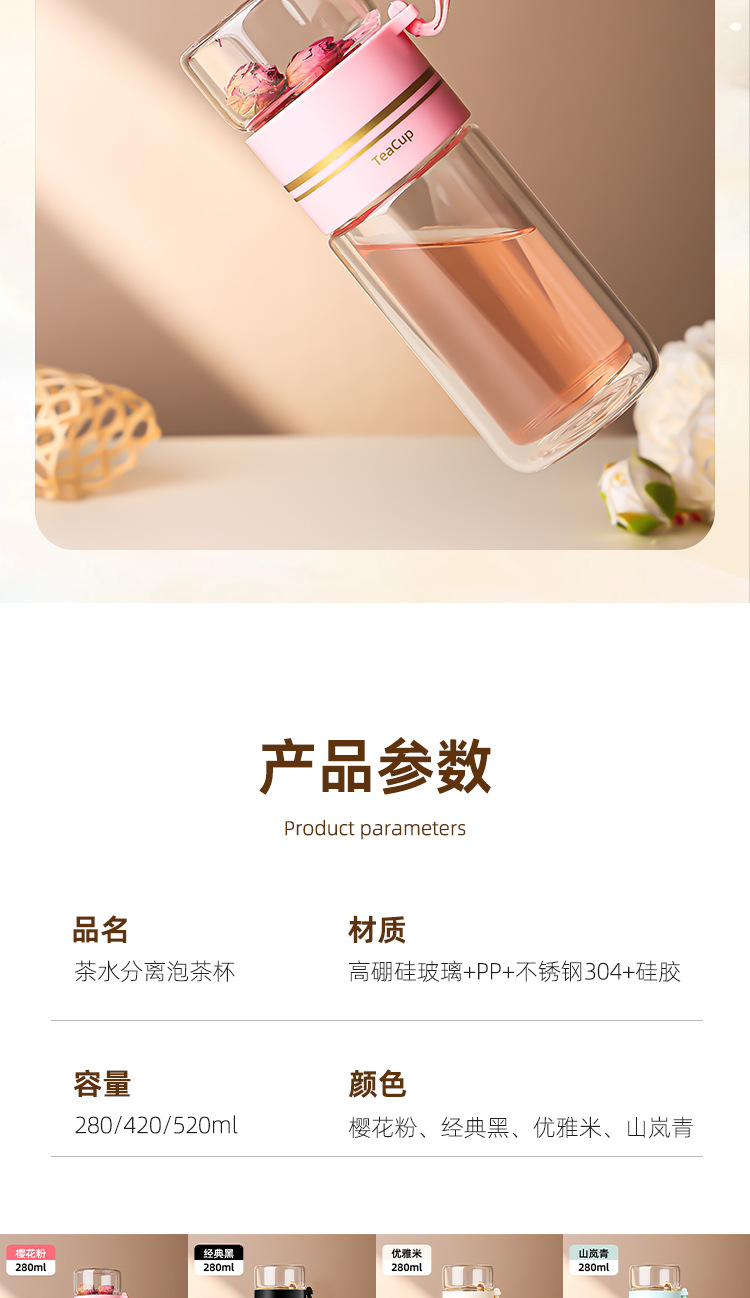 차 분리 컵 남성과 여성 차 유리 이중 절연 유리 컵 선물 컵 도매