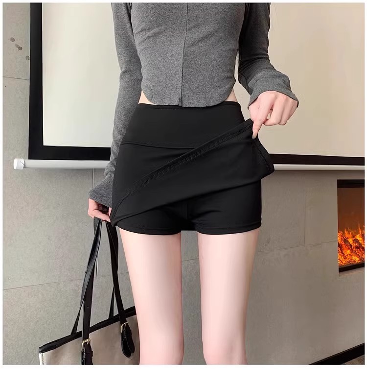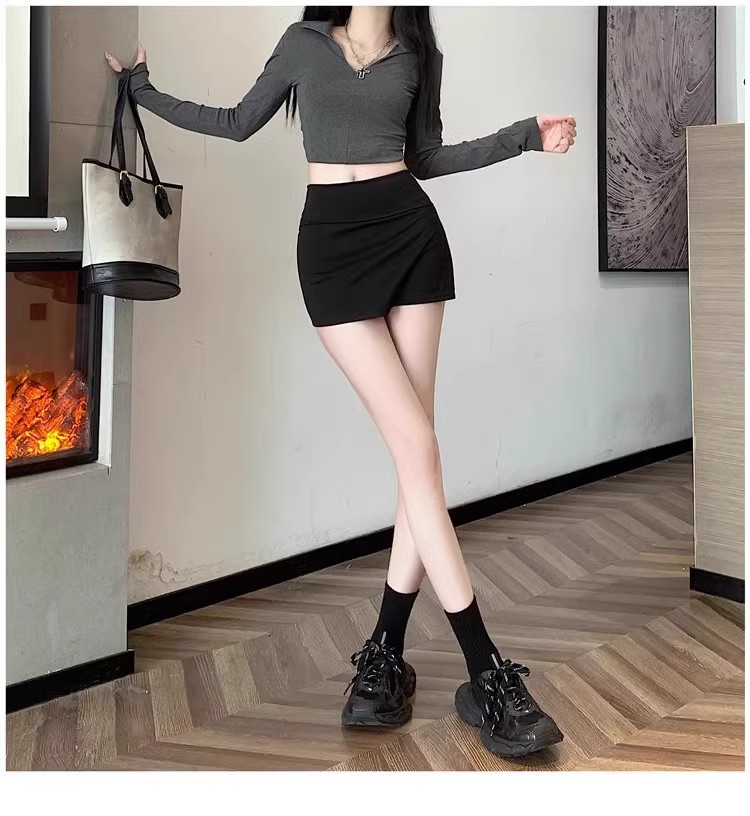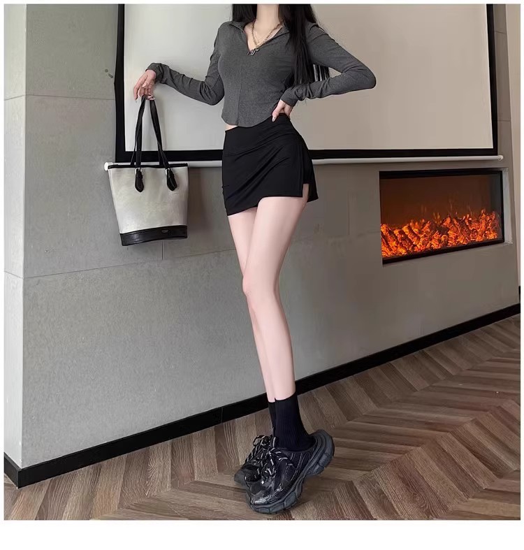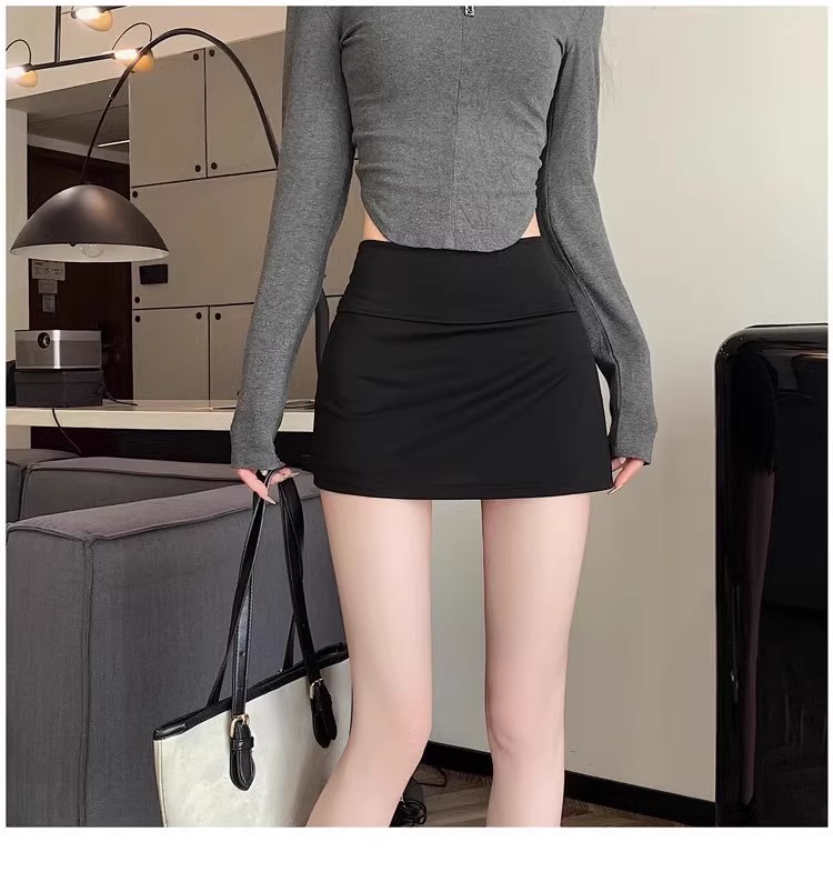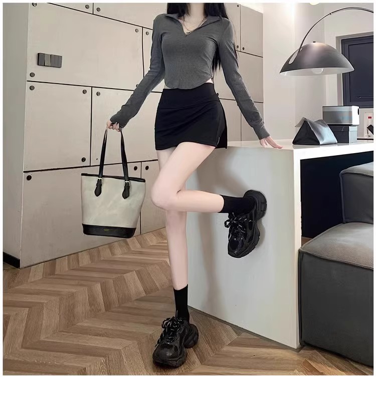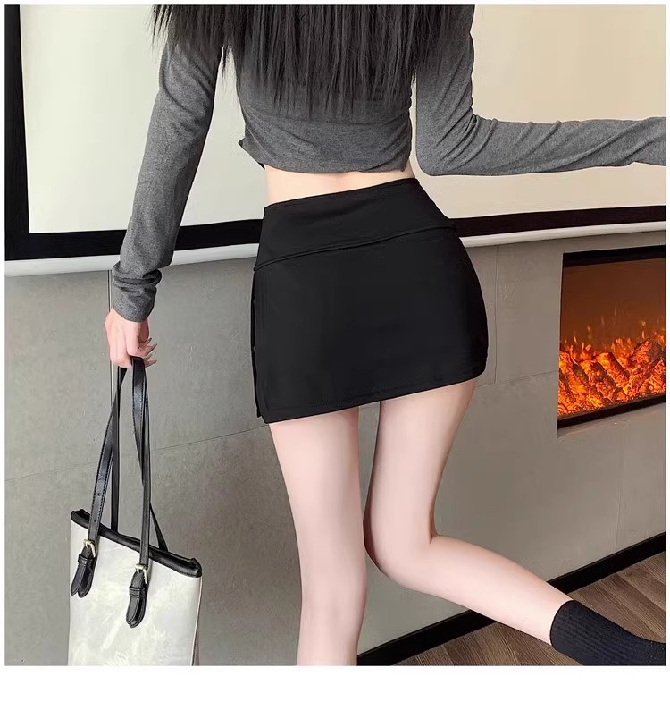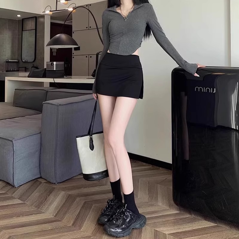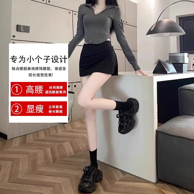 여자 짧은 치마 스커트 2024 새로운 봄과 여름 분할 엉덩이 스커트 높은 허리 스커트 블랙 A 라인 스커트스토어 가기