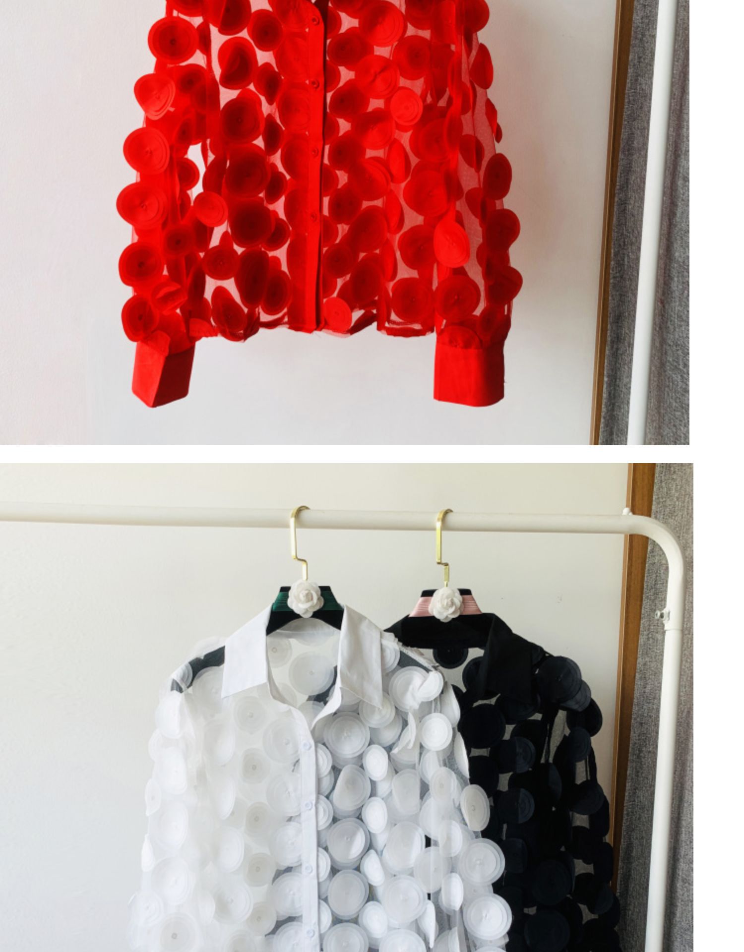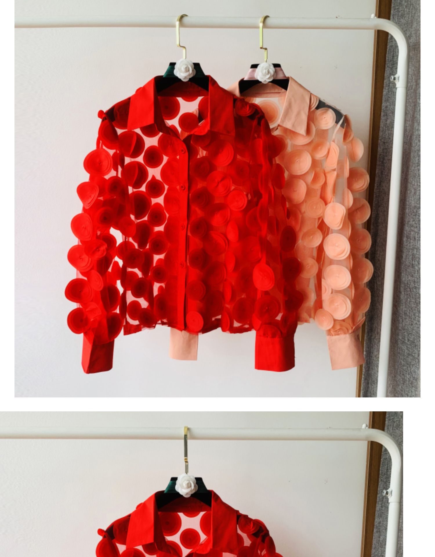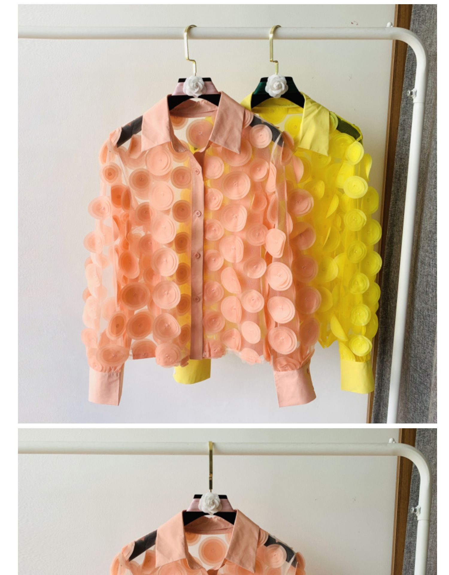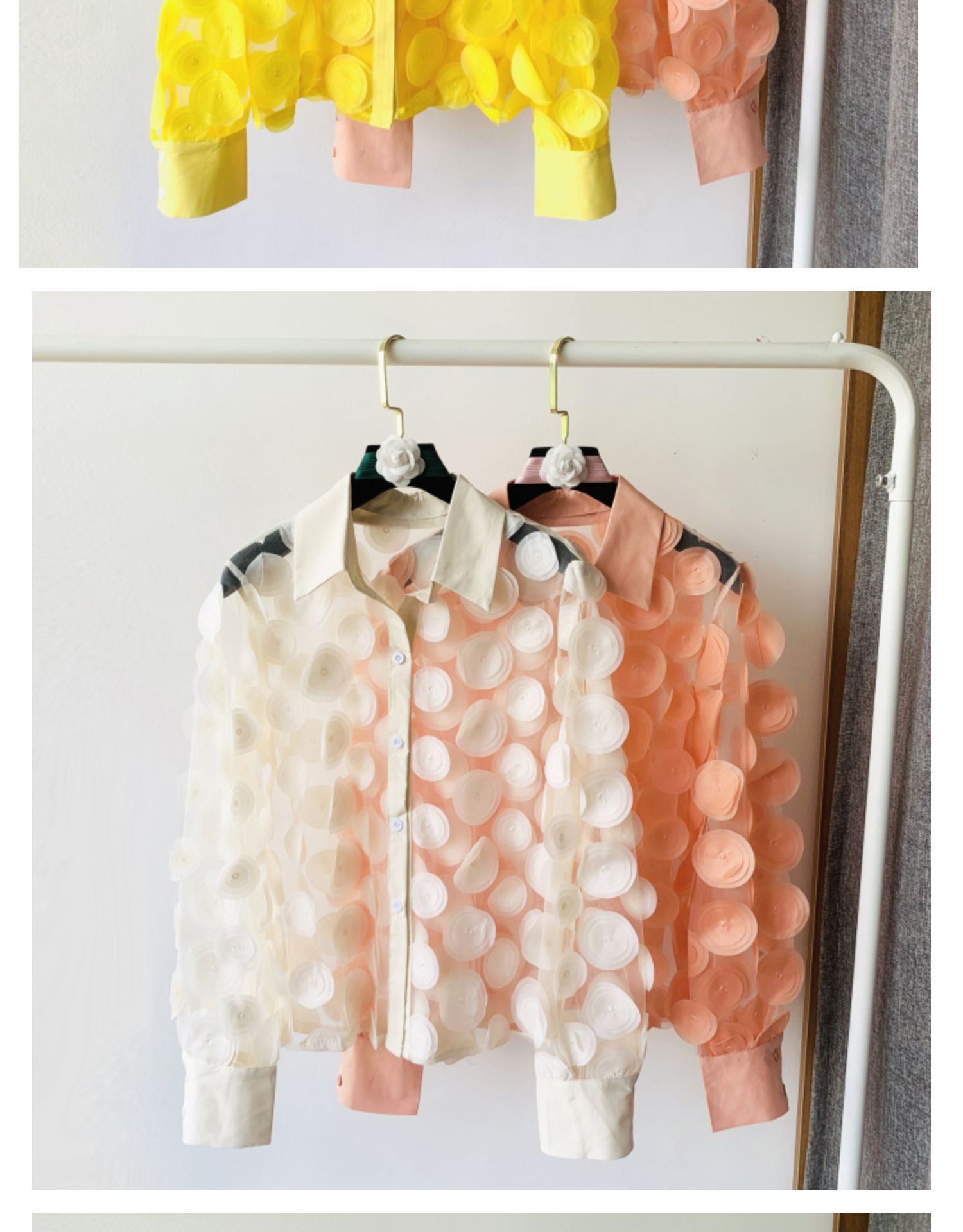 프랑스 궁전 스타일 입체 꽃잎 요정풍 쉬폰 셔츠 다용도 레이스 긴팔 셔츠 여성용 패셔너블한 망사 탑스토어 가기
