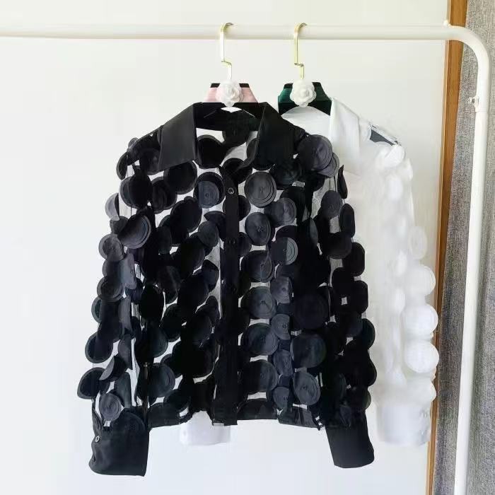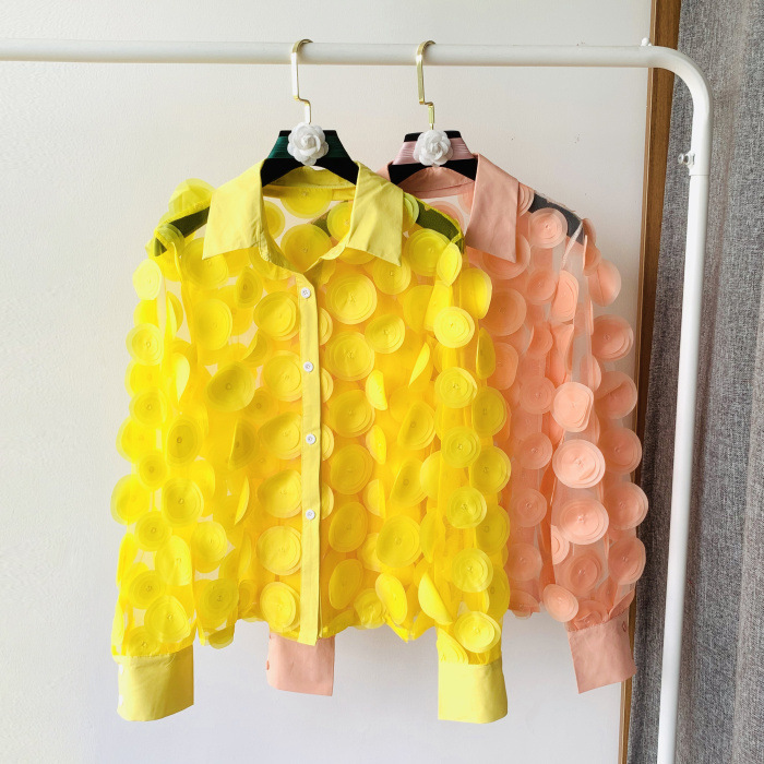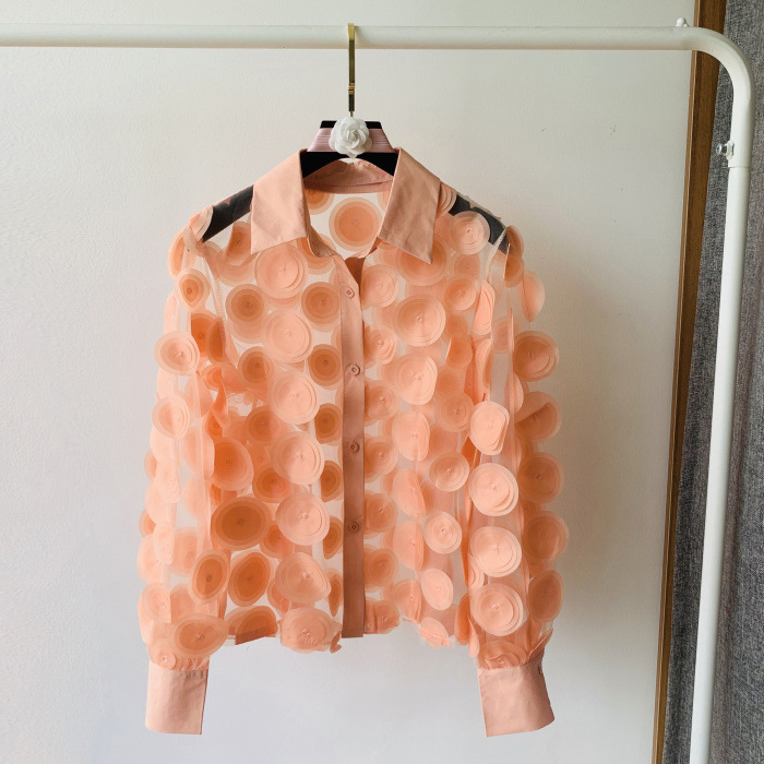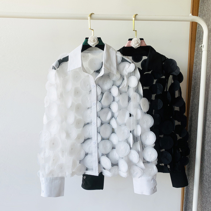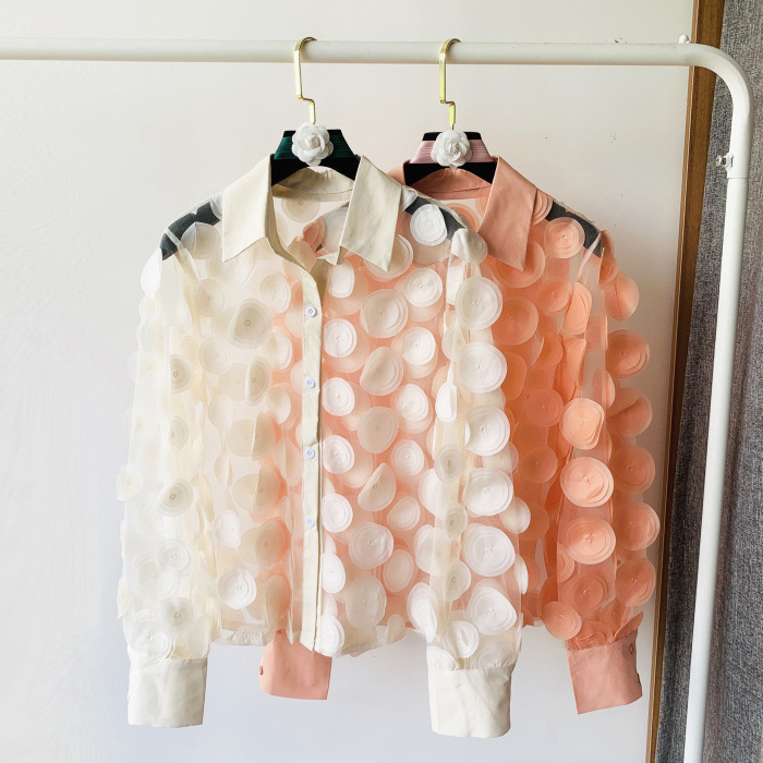 프랑스 궁전 스타일 입체 꽃잎 요정풍 쉬폰 셔츠 다용도 레이스 긴팔 셔츠 여성용 패셔너블한 망사 탑