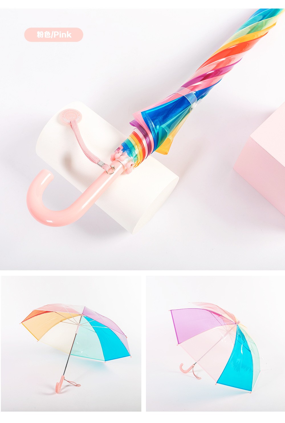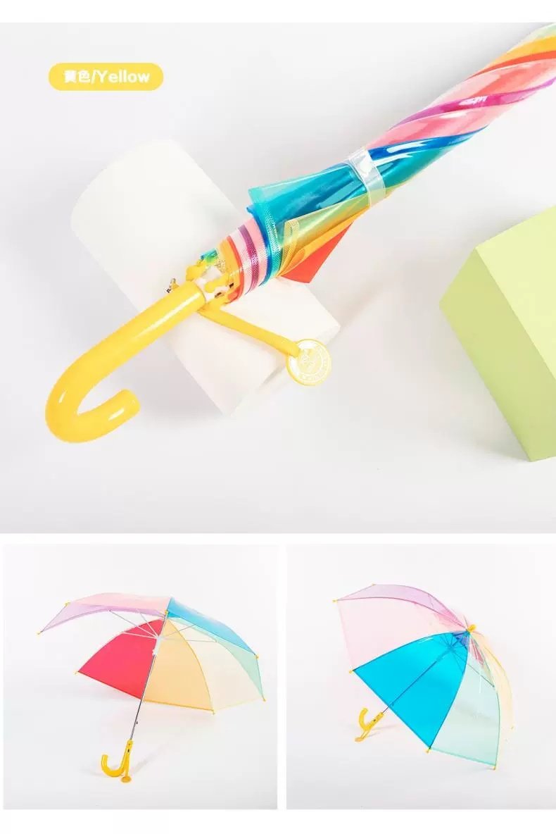 어린이 우산 손 열린 긴 손잡이 어린이 투명 우산 무지개 우산 V45O3-8 년 동안 투명 우산스토어 가기