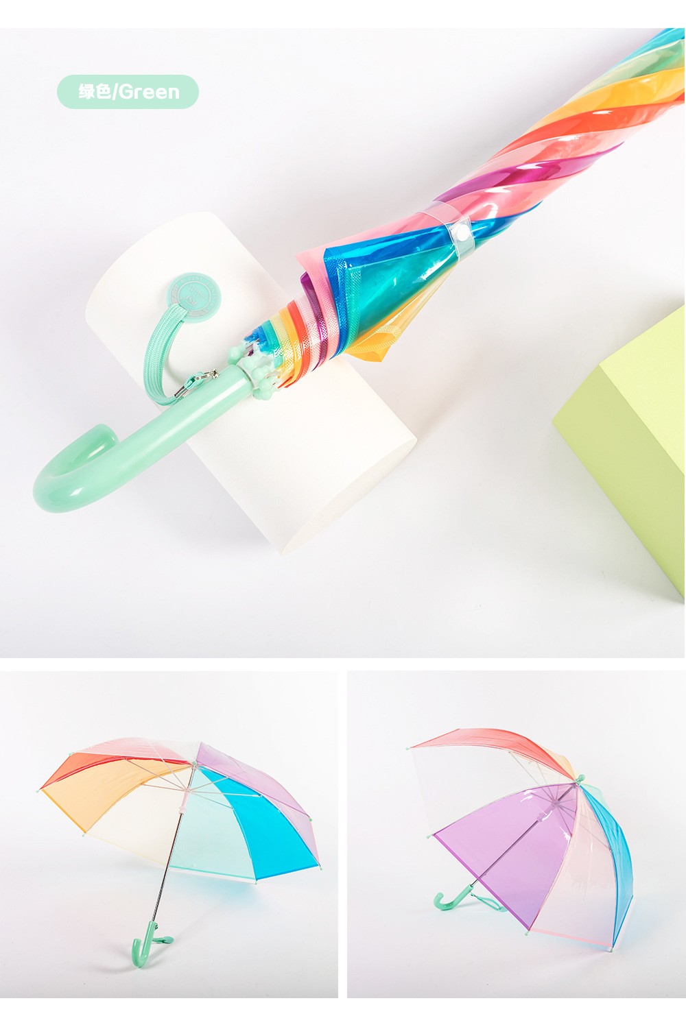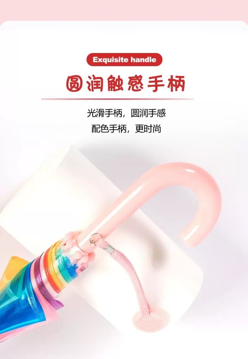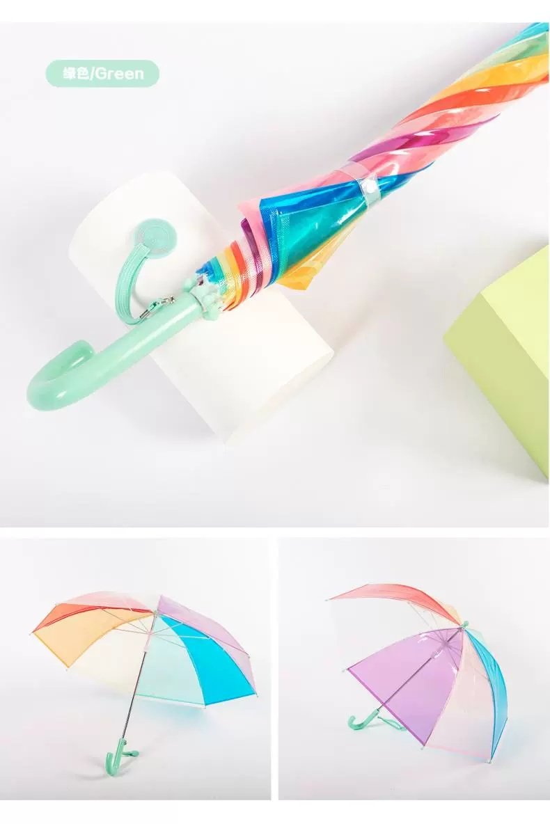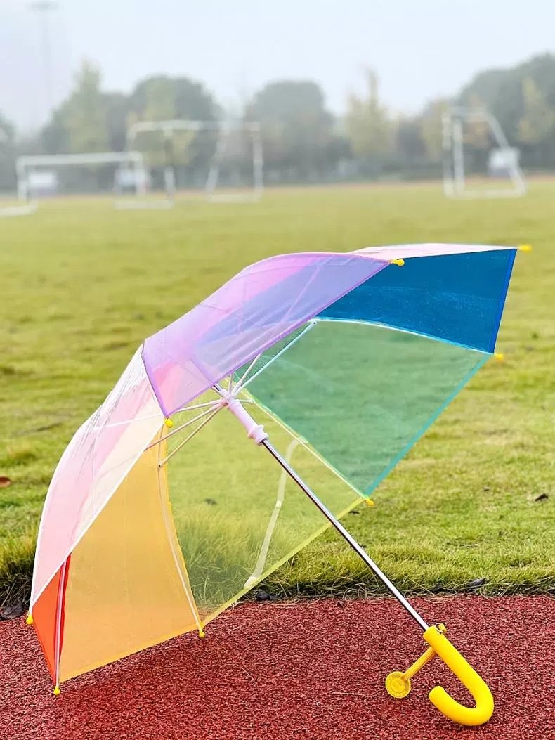 어린이 우산 손 열린 긴 손잡이 어린이 투명 우산 무지개 우산 V45O3-8 년 동안 투명 우산