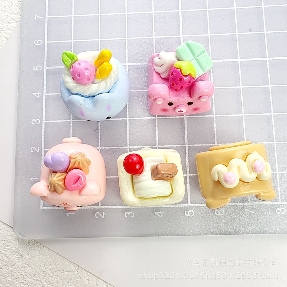 스테레오 시뮬레이션 음식과 놀이 케이크 돼지 고기 곰 수지 액세서리 DIY 전화 케이스 헤어핀 냉장고 키 체인스토어 가기