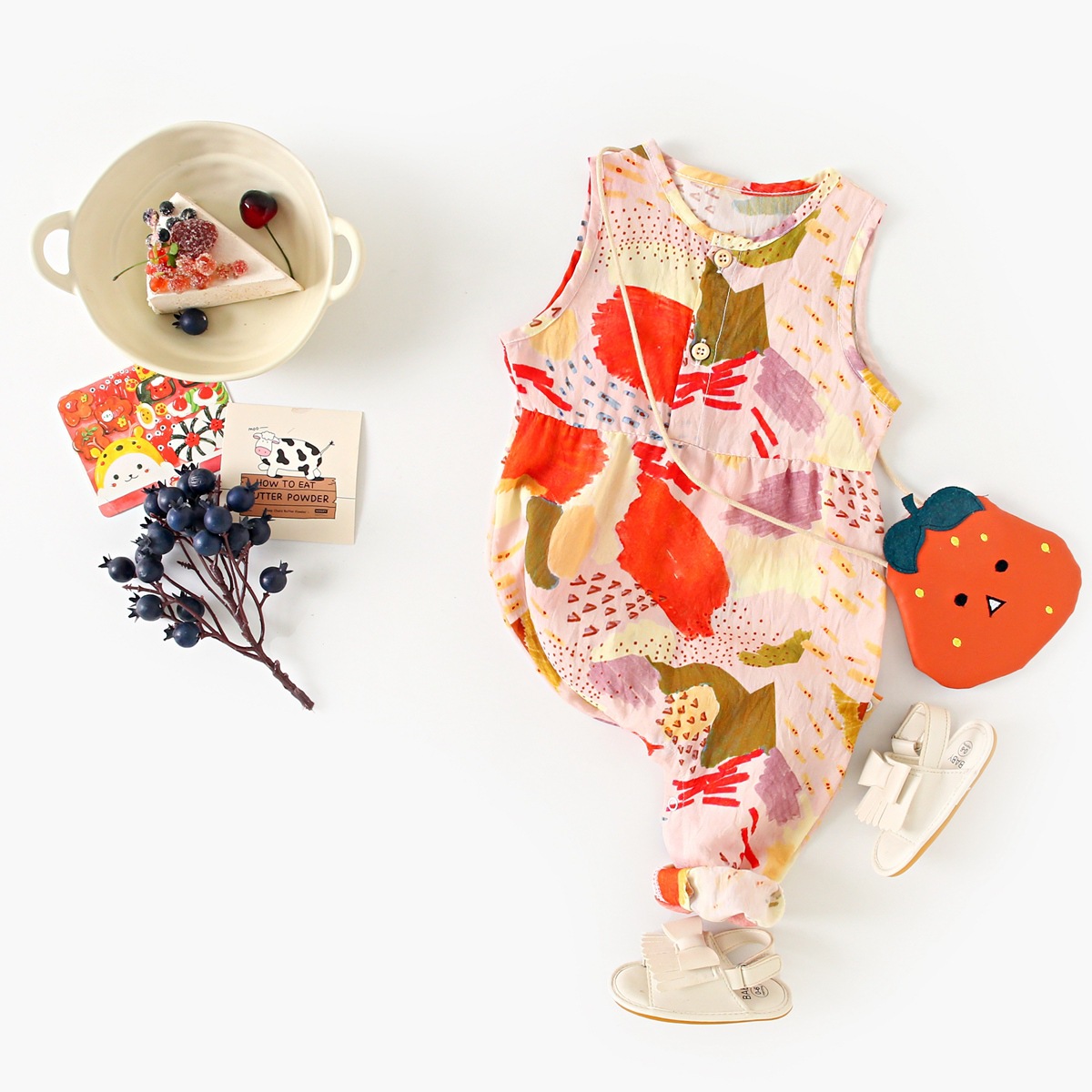 아기 옷 꽃 여름 아기 소녀의 등반 착용 한국식 서양식 조끼 하퍼 비치 휴가 아기의 올인원 세트스토어 가기