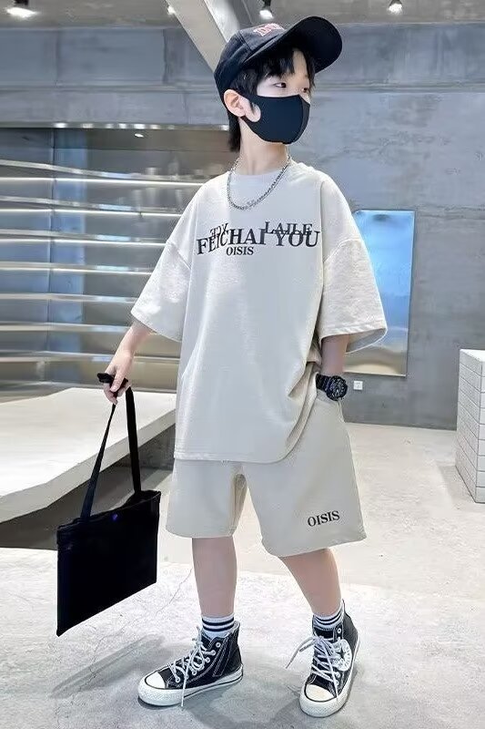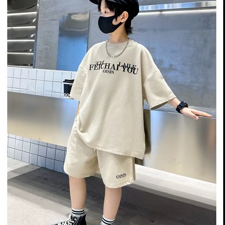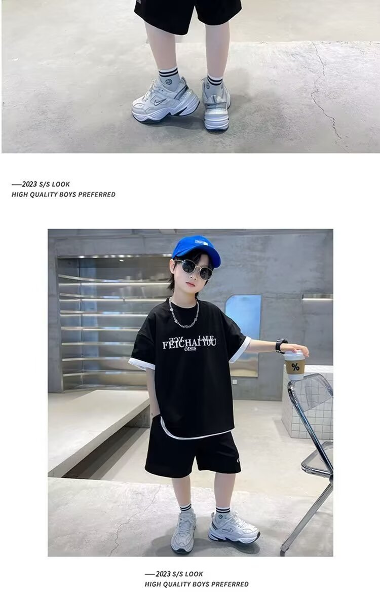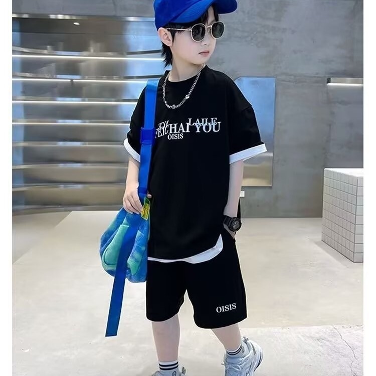 소년 여름 코튼 반팔 세트 2024 새로운 멋진 핸섬 프라이드 스트리트 미들 및 큰 아이들 얇은 스포츠 투피스 패셔너블 쿨