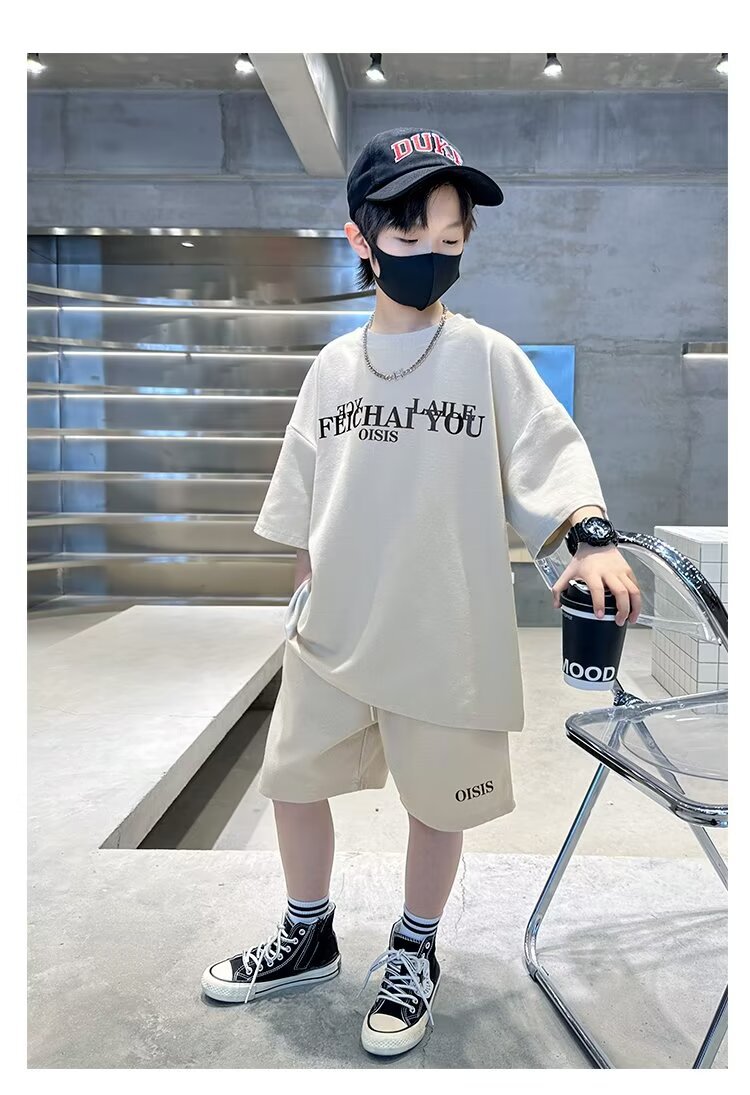 소년 여름 코튼 반팔 세트 2024 새로운 멋진 핸섬 프라이드 스트리트 미들 및 큰 아이들 얇은 스포츠 투피스 패셔너블 쿨스토어 가기