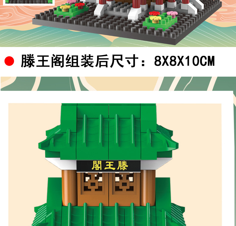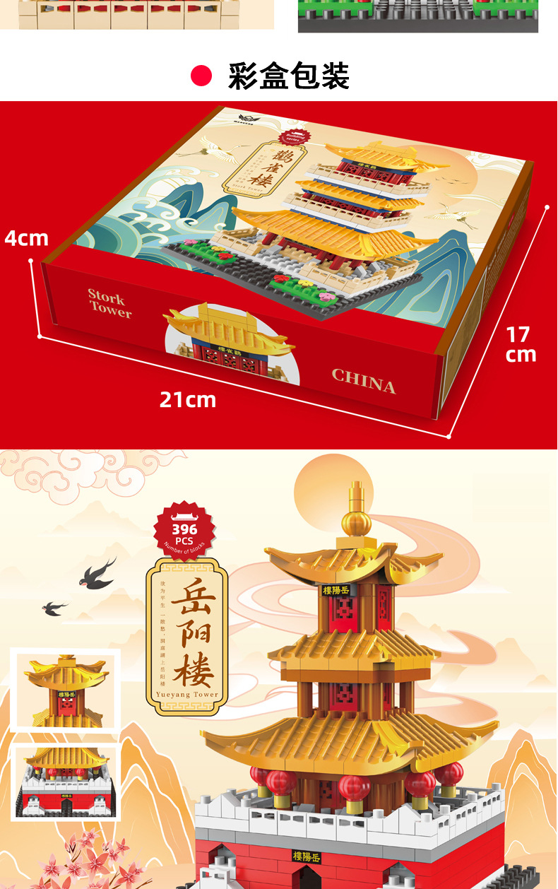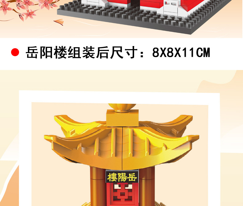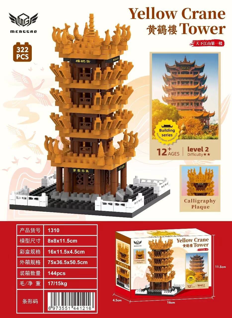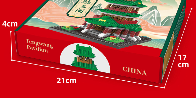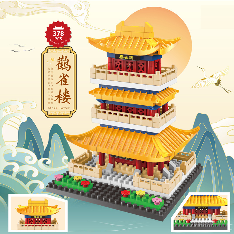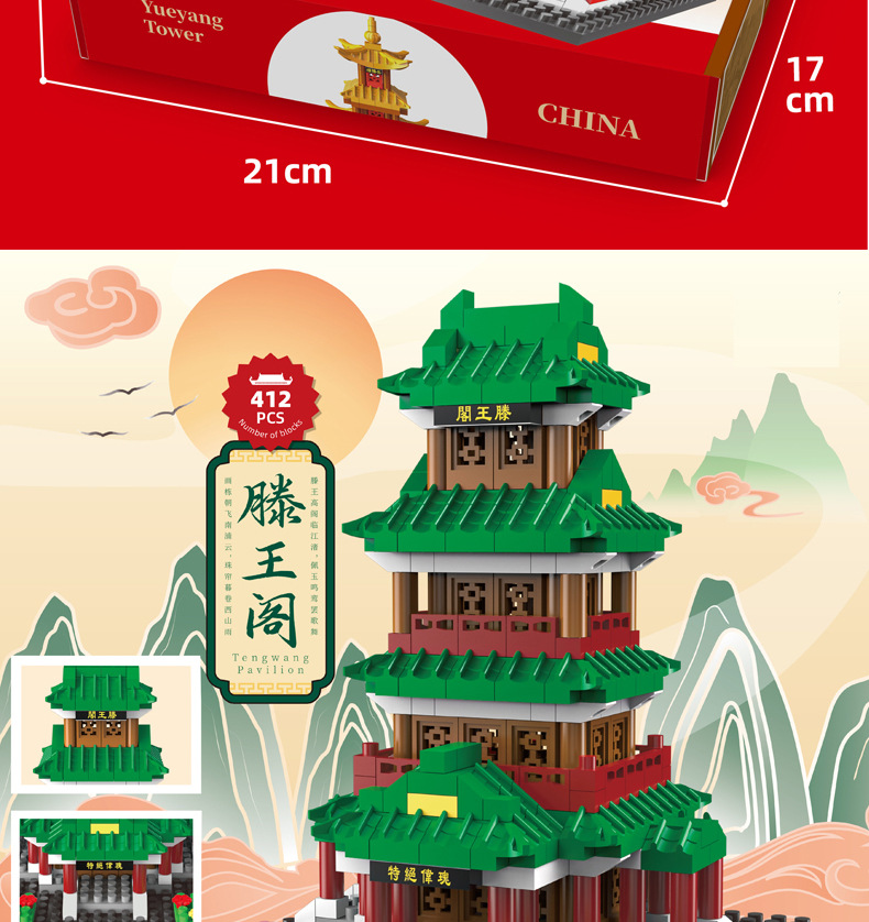 중국 고대 건축 건물, 4 개의 유명한 건물 Tengwang Pavilion Yellow Crane Yueyang Stork Tower 소년과 소녀 조립 된 Puetic Building Block