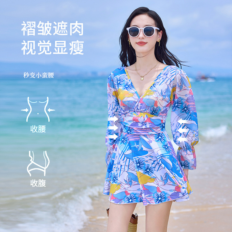 여름 숙녀 긴 소매 선 스크린 원피스 수영 스커트 통기성 메쉬 맞춤형 인쇄 해변 휴가 수영 스커트 도매스토어 가기