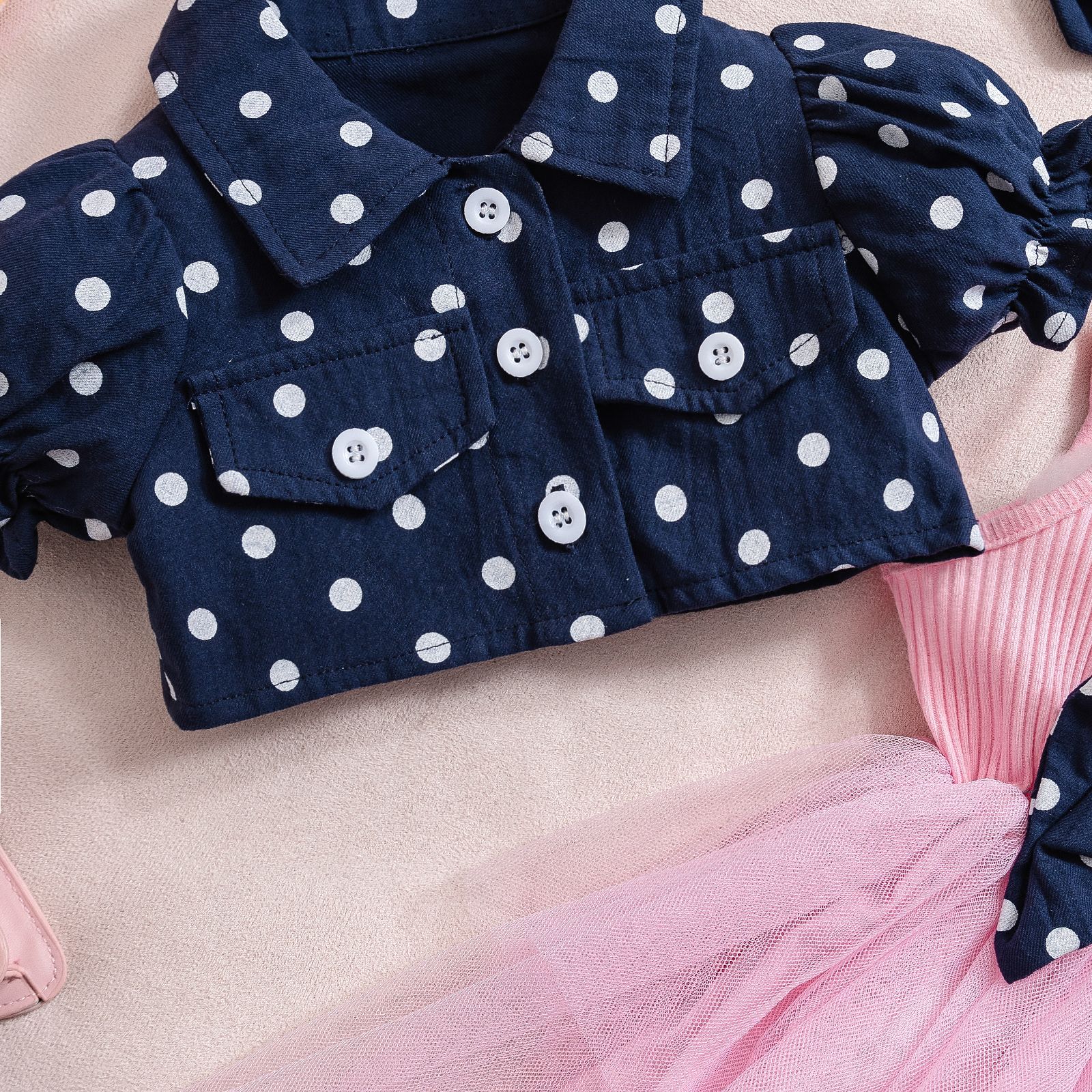 Baoxin Children's Wear 유럽과 미국 스타일의 웨이브 포인트 옷깃 버블 반팔 재킷, 슬링 보우 거즈 스커트 소녀의 3 피스 세트