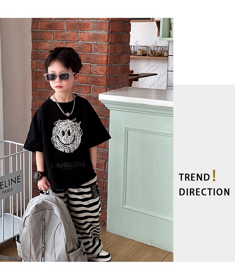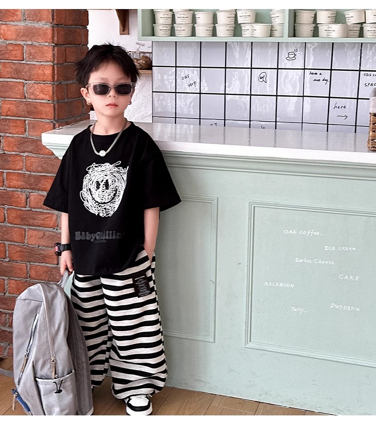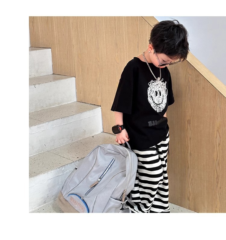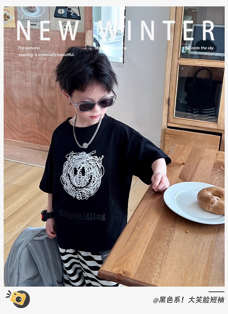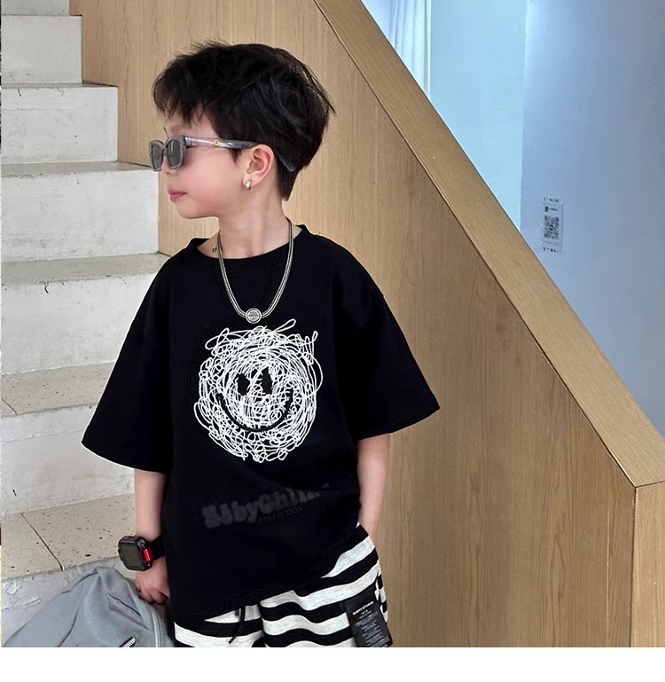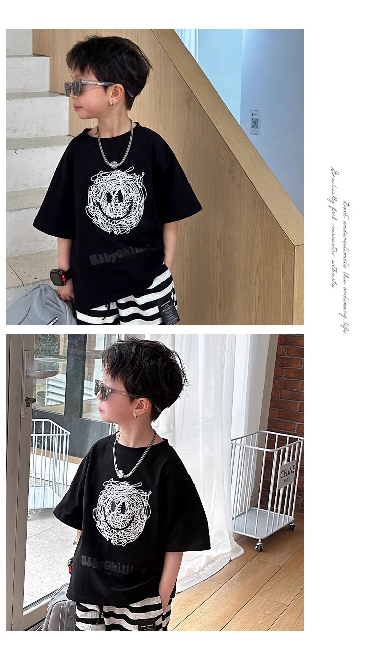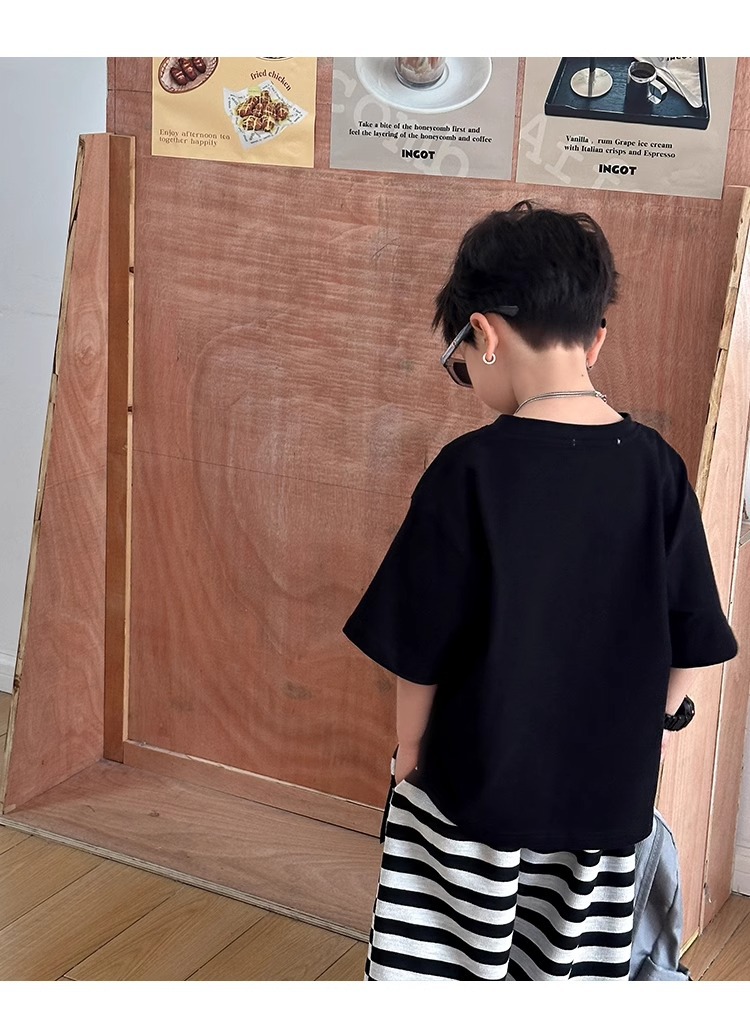남자 아동복 티셔츠 2024 여름 새 도착 소년 '빅 보이 한국 스타일 느슨한 캐주얼 반팔 소녀상스토어 가기