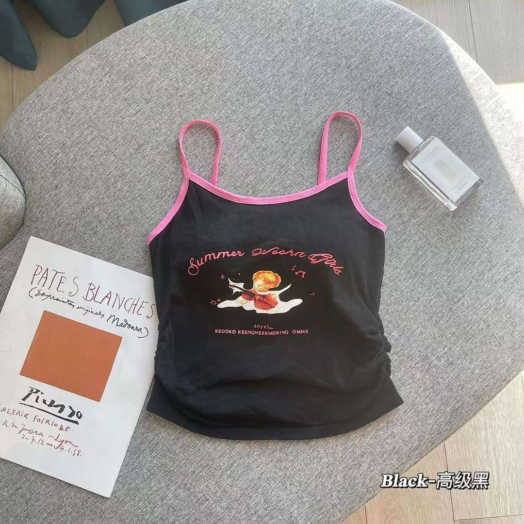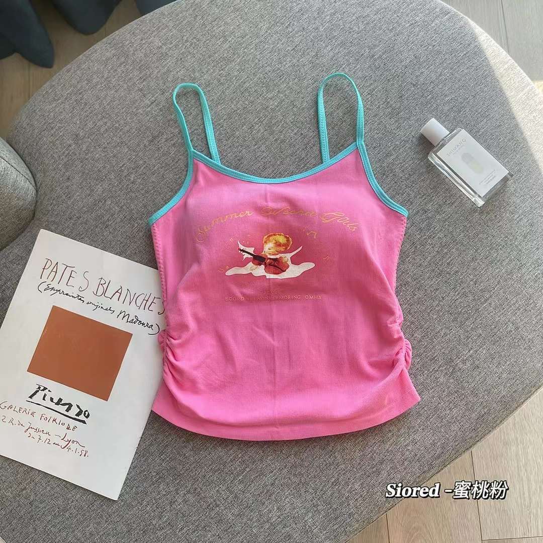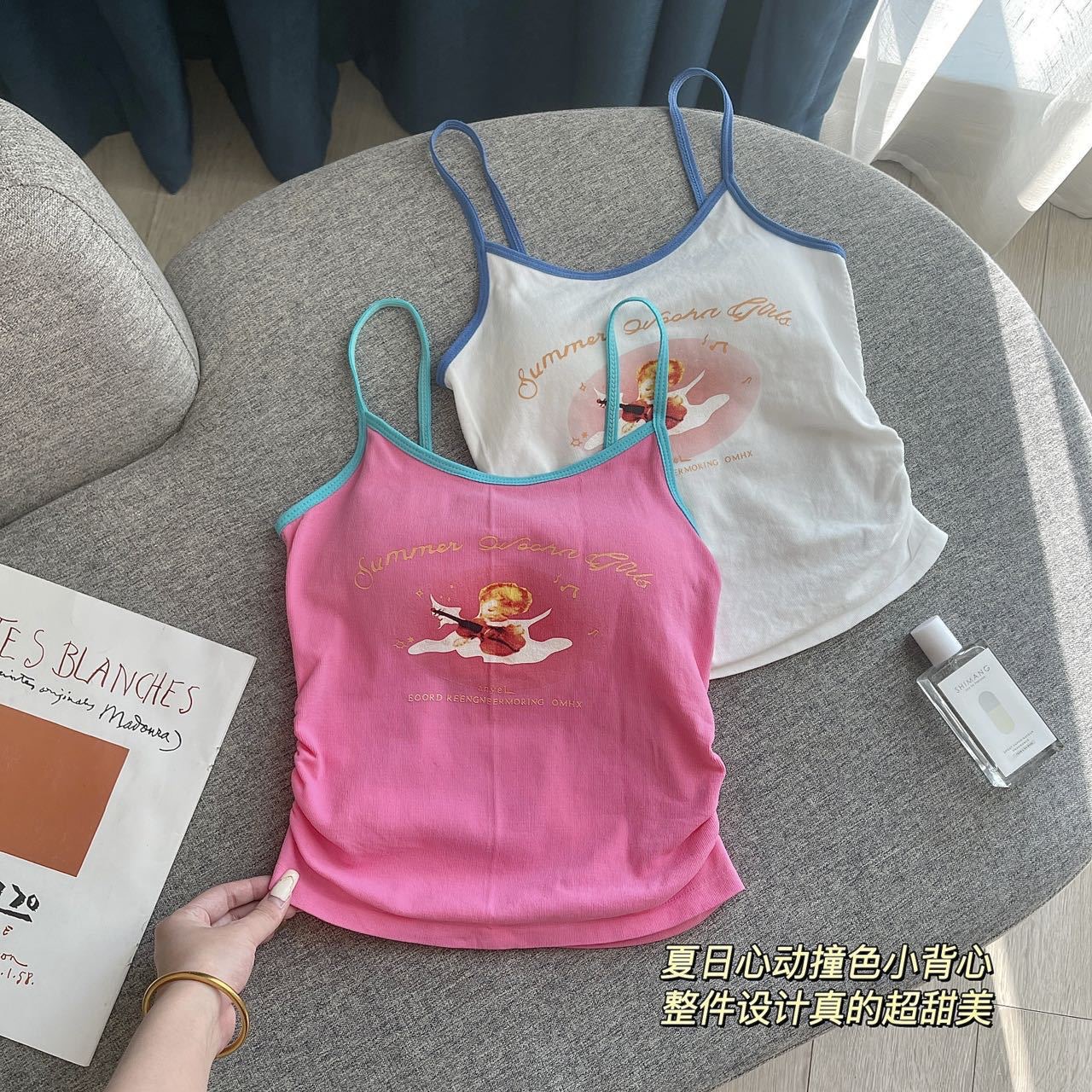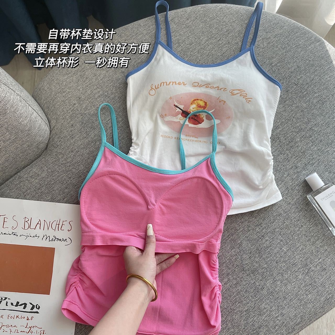 순수한 소원 뜨거운 소녀 대조 컬러 카미 솔 원피스 고정 컵 외부 착용 내복 안티 러닝 라이트 편안한 소녀의 가슴 랩