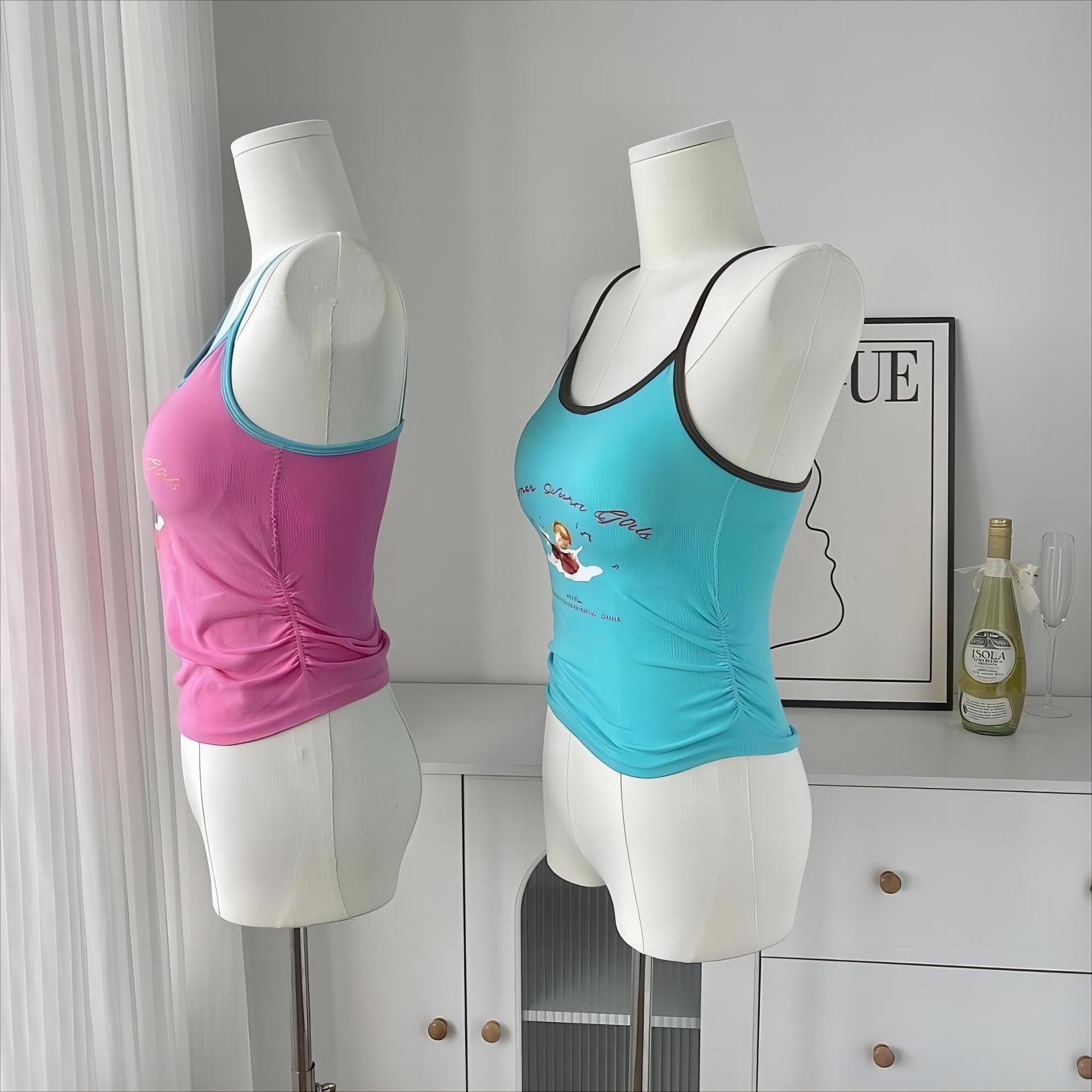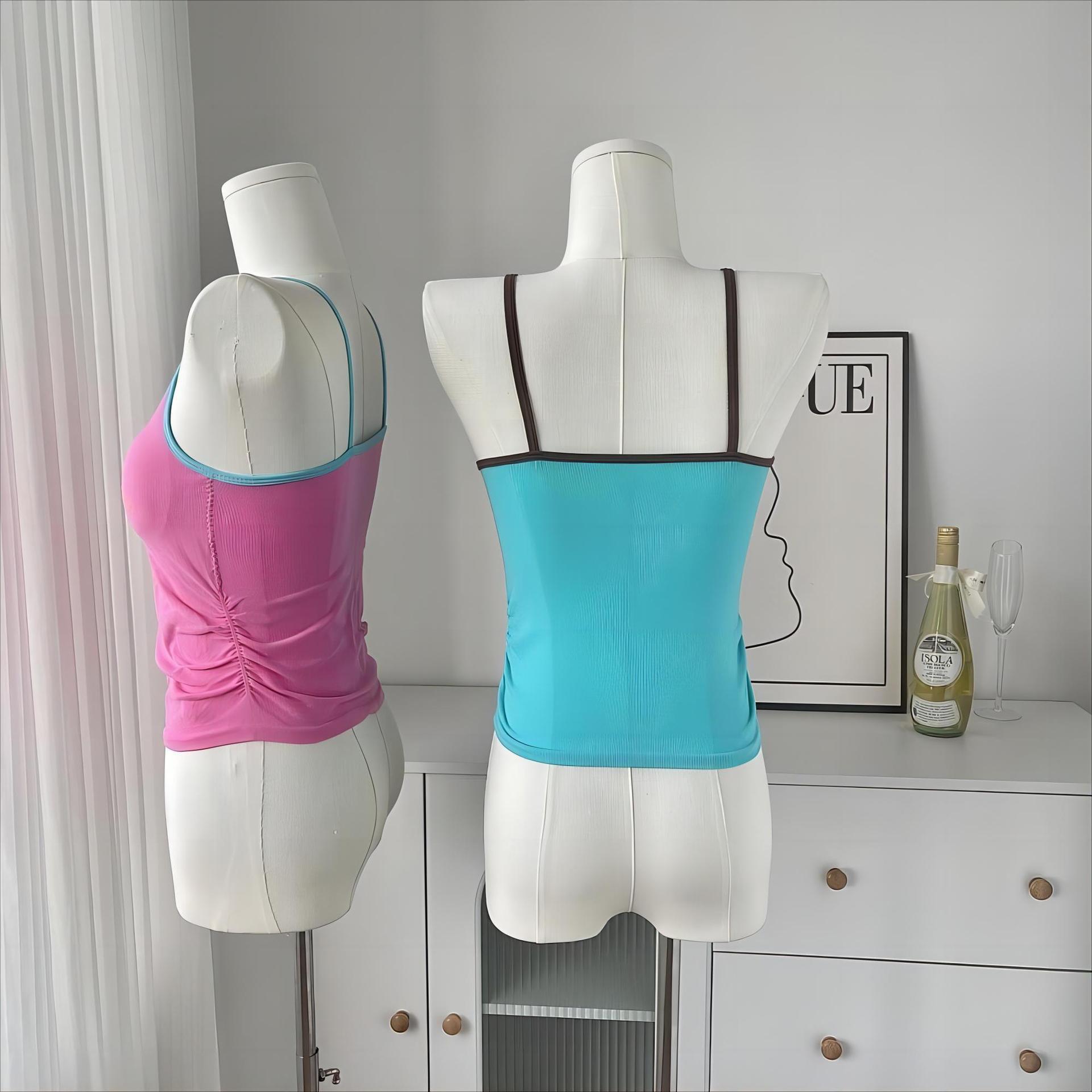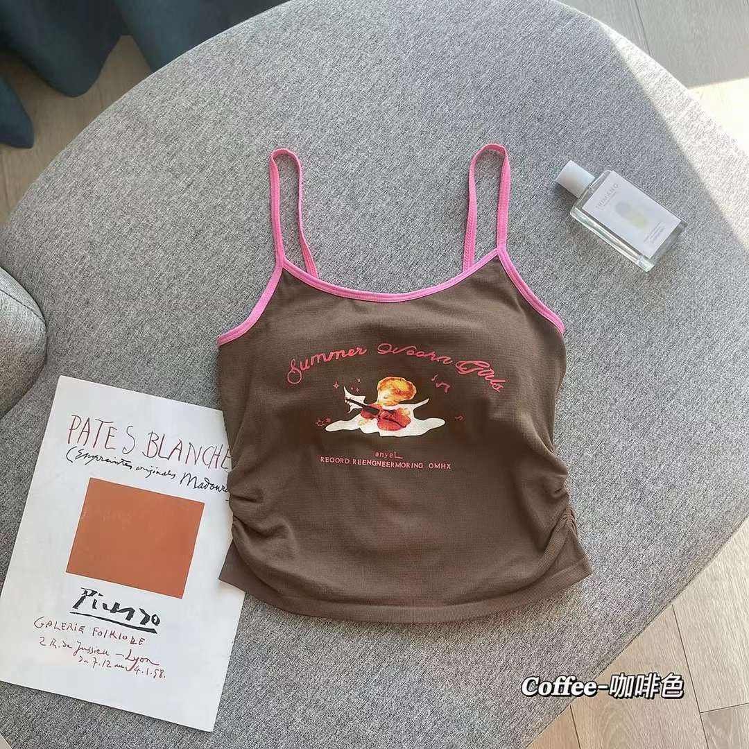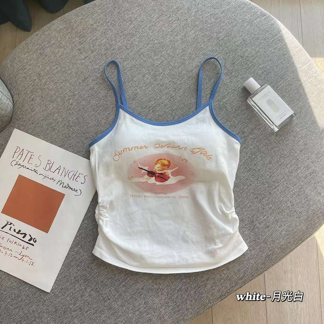 순수한 소원 뜨거운 소녀 대조 컬러 카미 솔 원피스 고정 컵 외부 착용 내복 안티 러닝 라이트 편안한 소녀의 가슴 랩