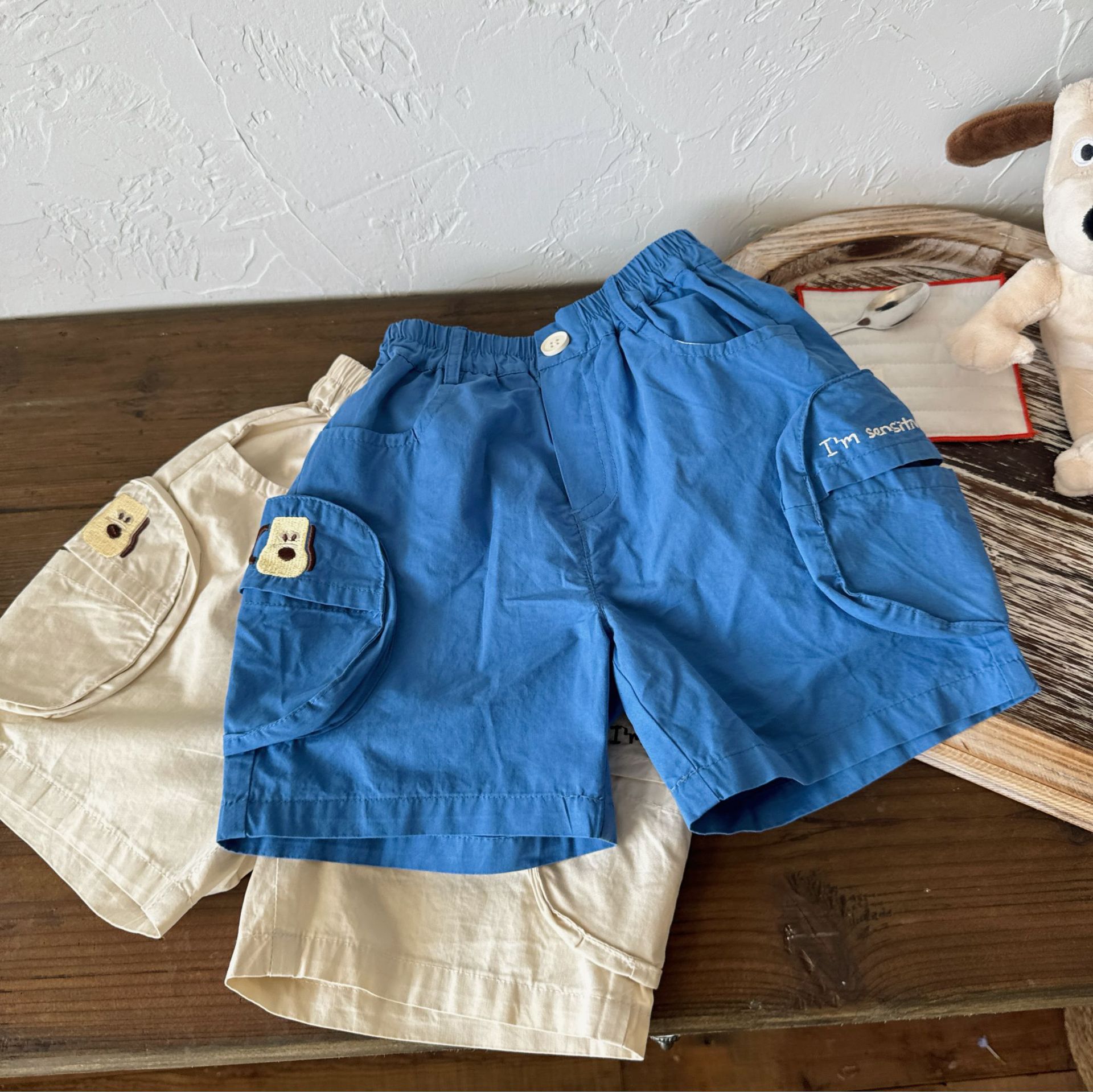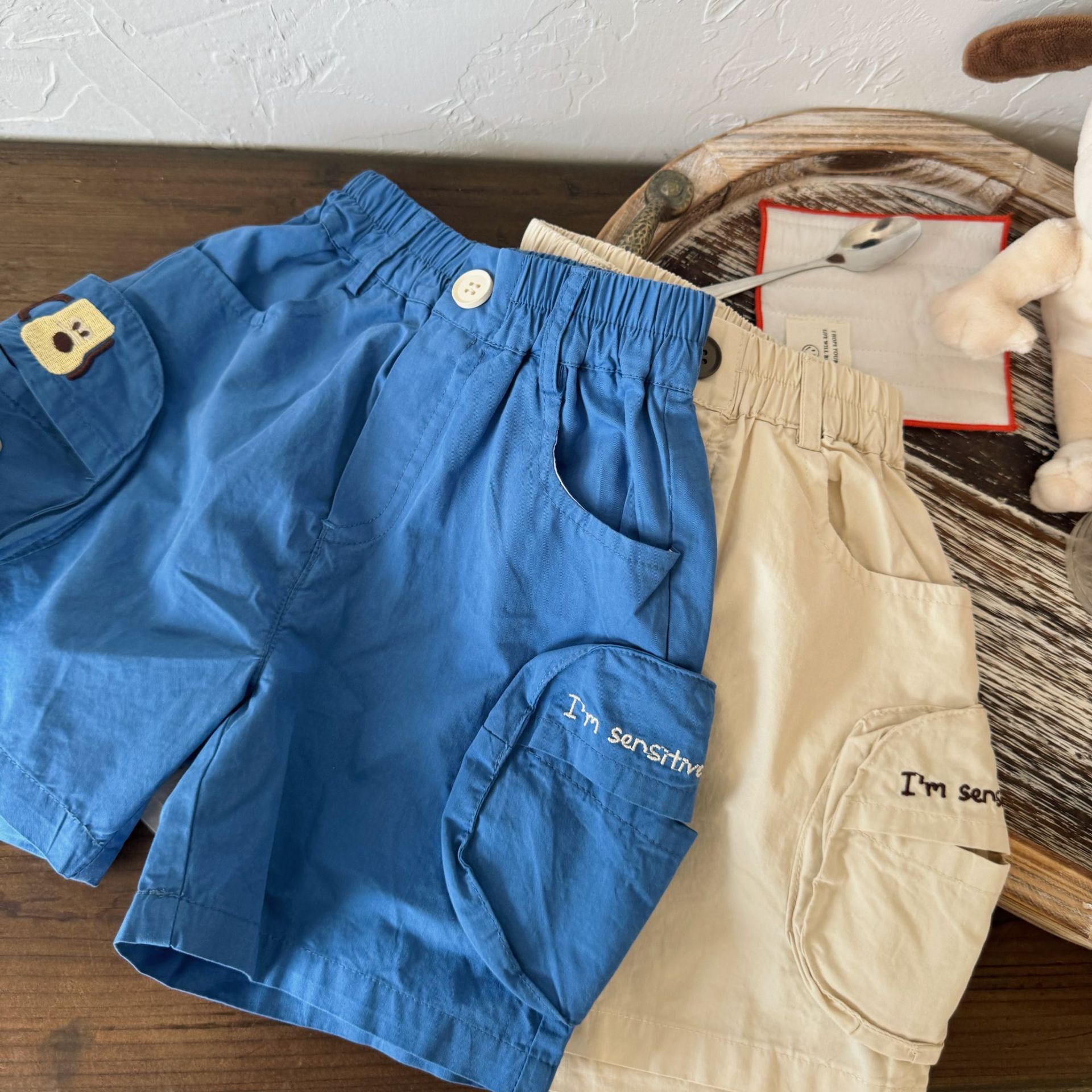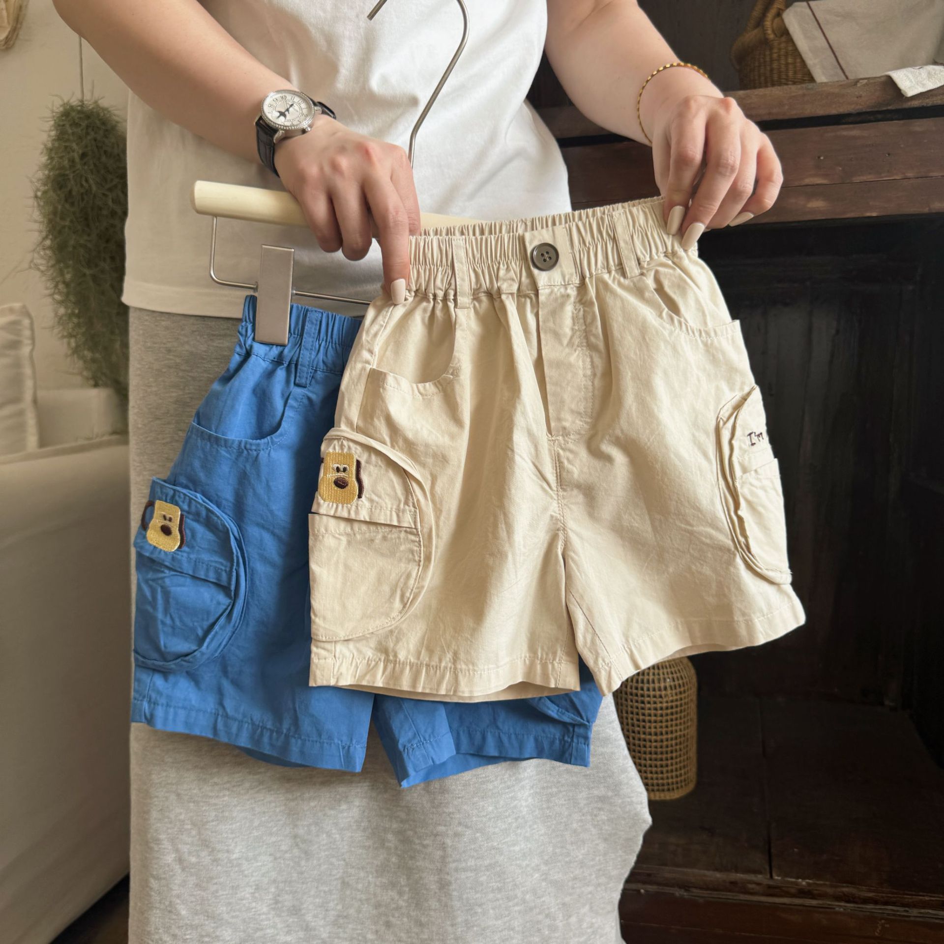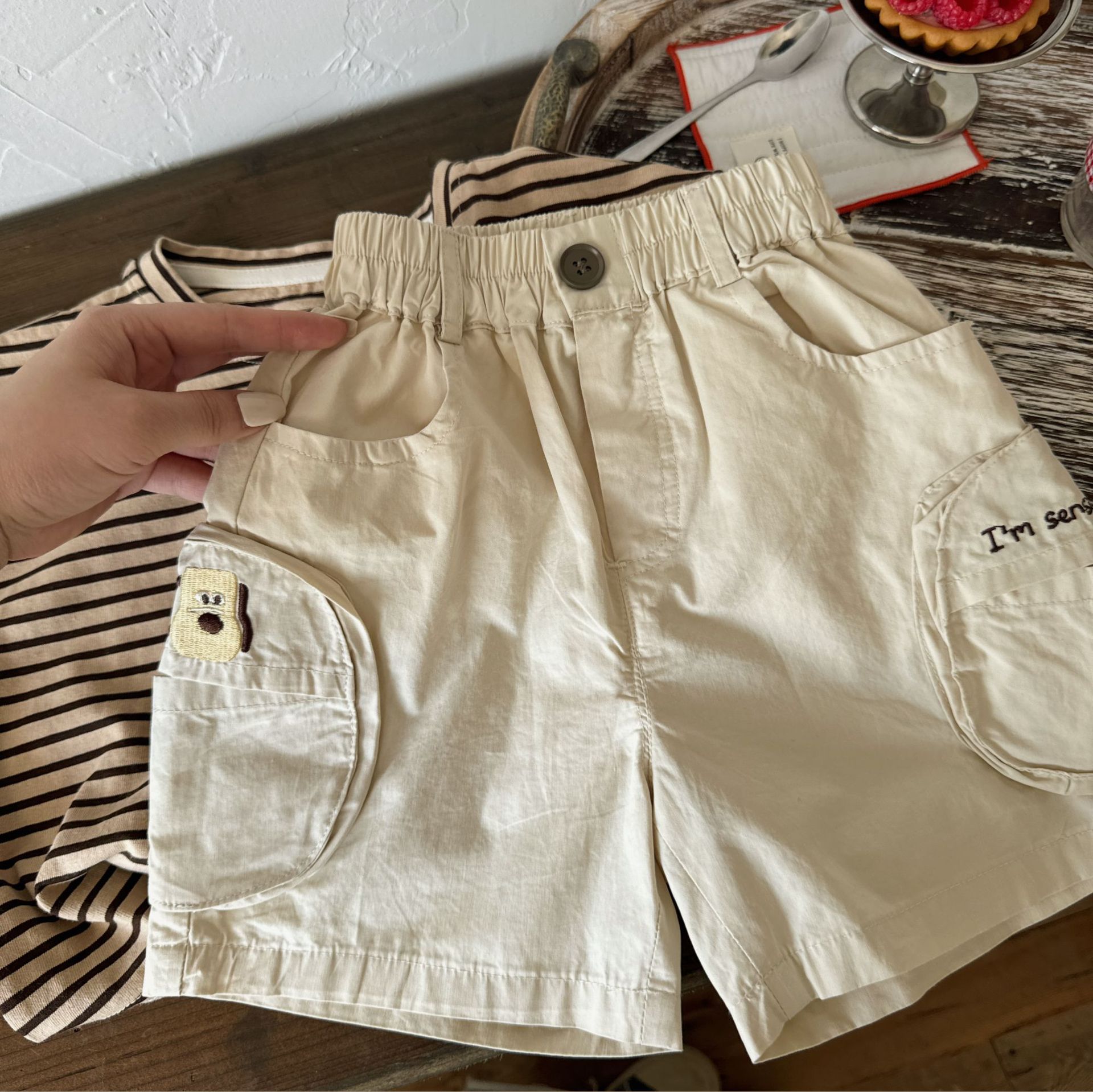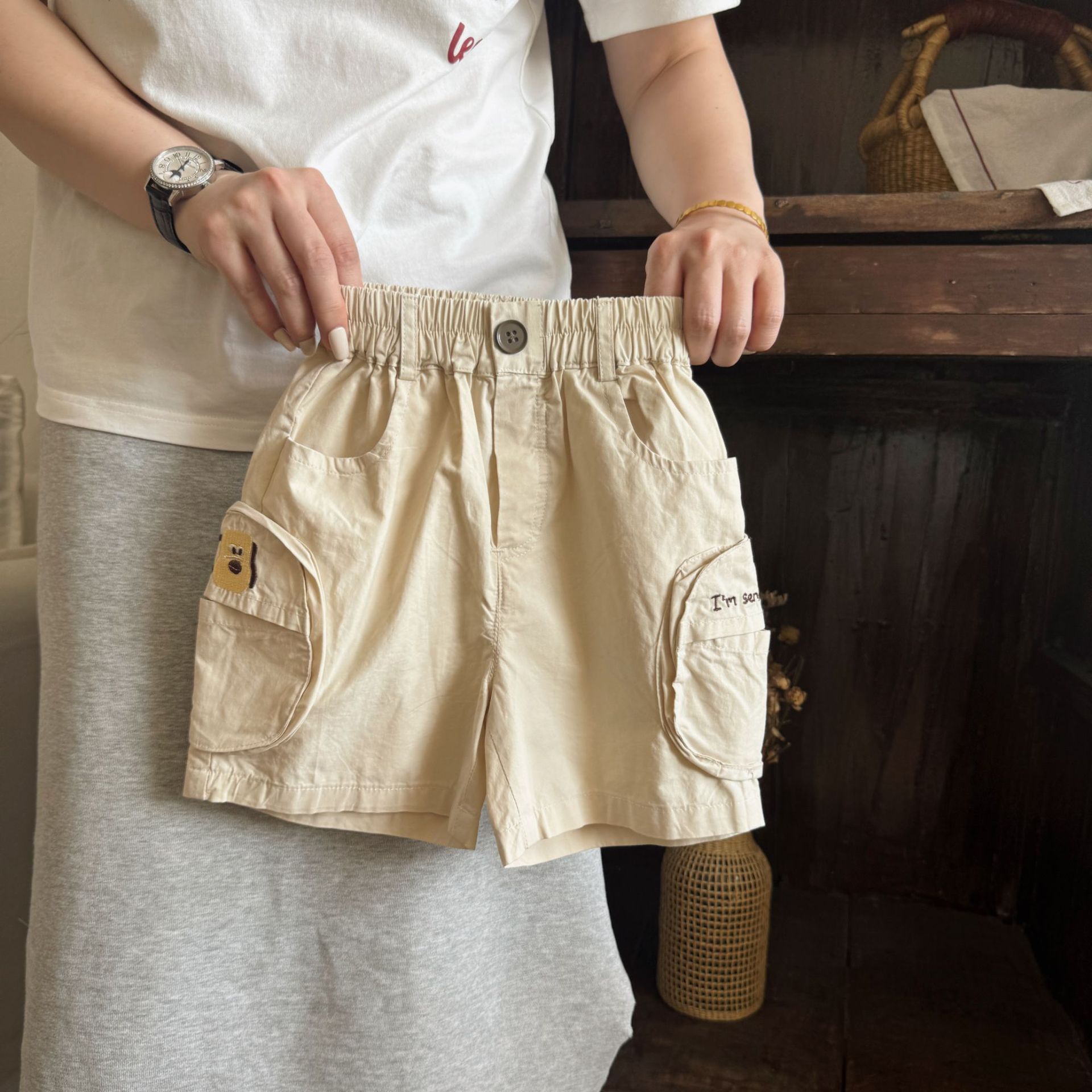 2024 여름 새로운 소년과 소녀 유행 커버 바지 어린이 아기 거리 튀김 입체 포켓 반바지스토어 가기