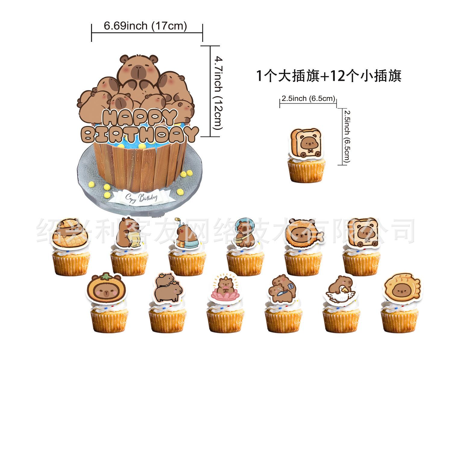 다크 브라운 카비발라 생일 장식 풍선 만화 동물 물 기니 돼지 파티 풀 플래그 배너 종이 트레이