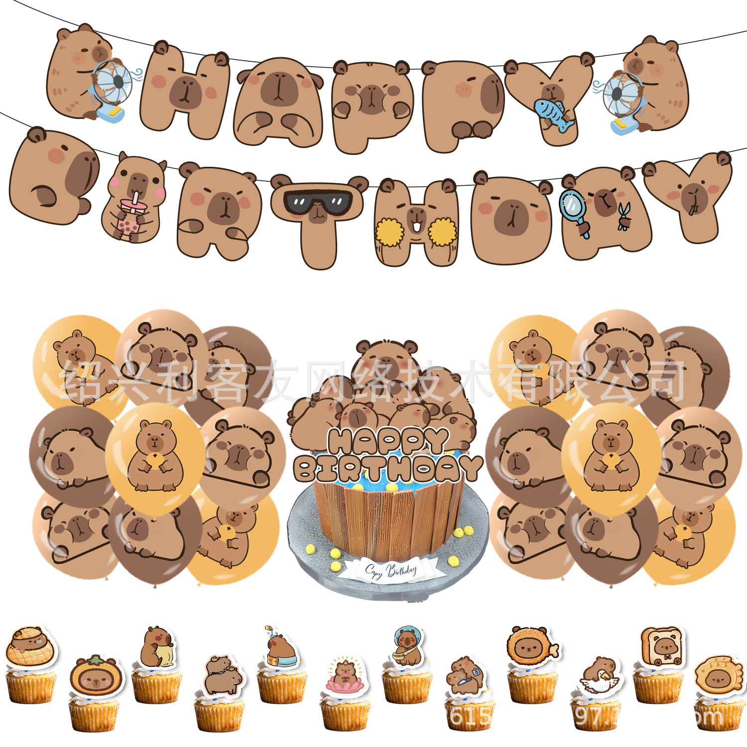 다크 브라운 카비발라 생일 장식 풍선 만화 동물 물 기니 돼지 파티 풀 플래그 배너 종이 트레이스토어 가기