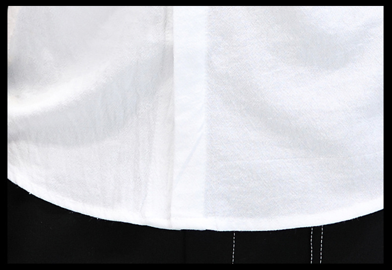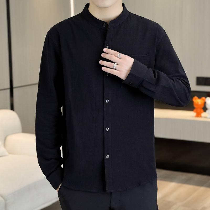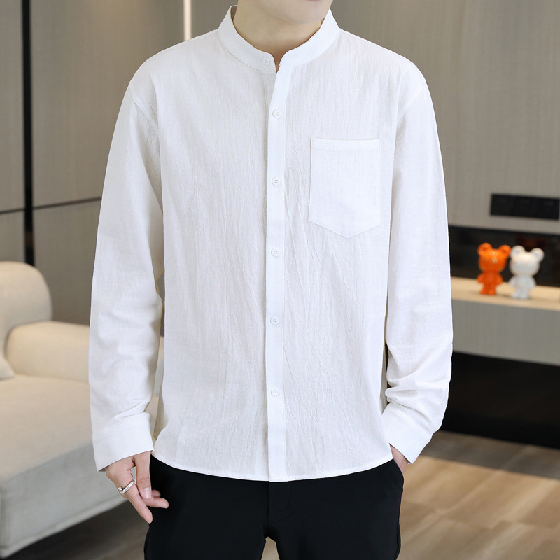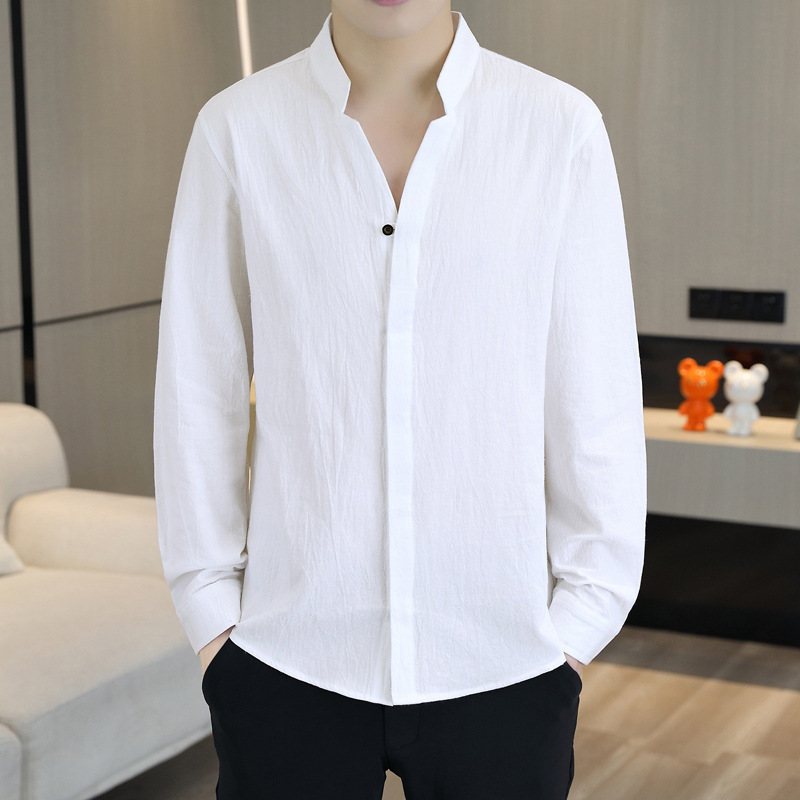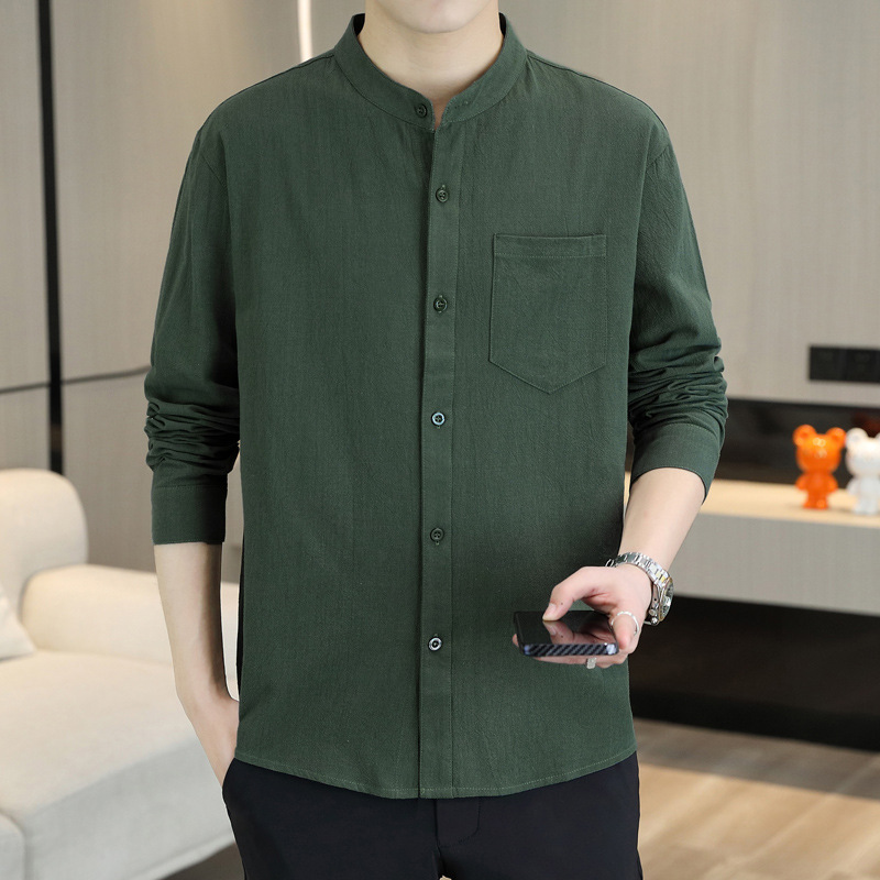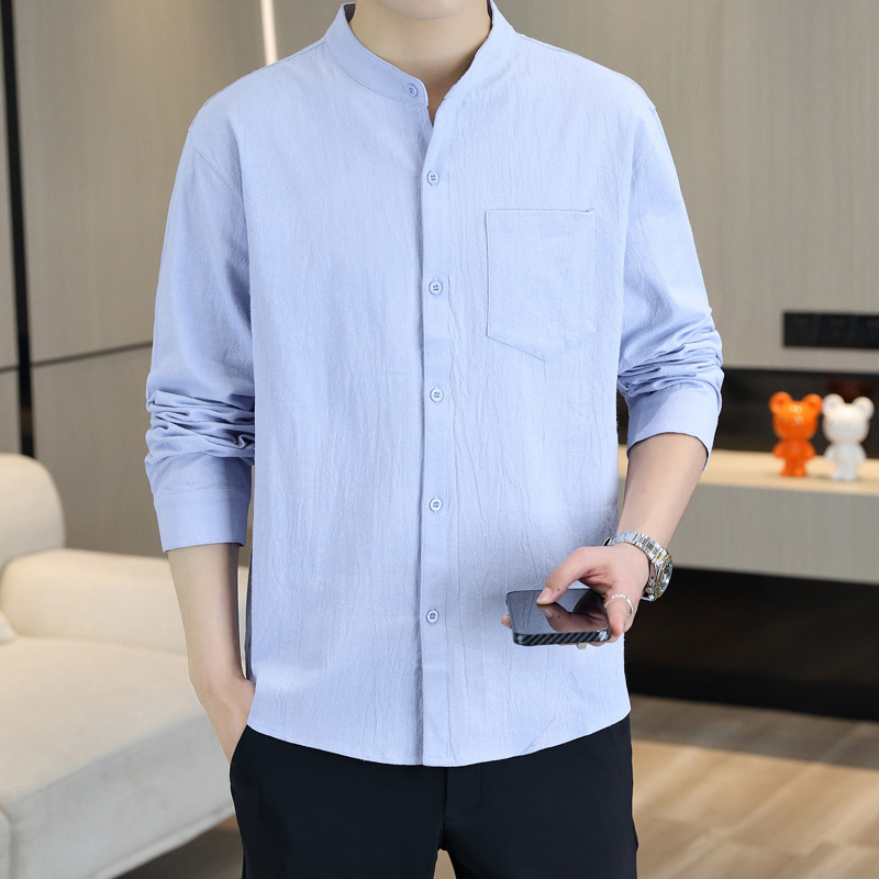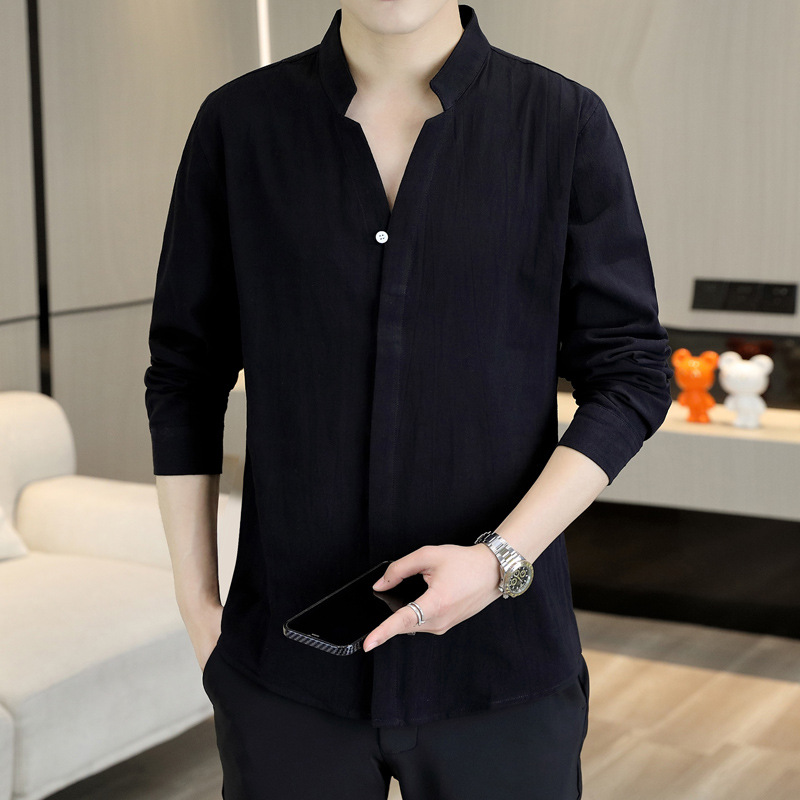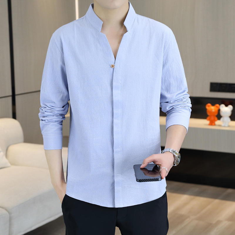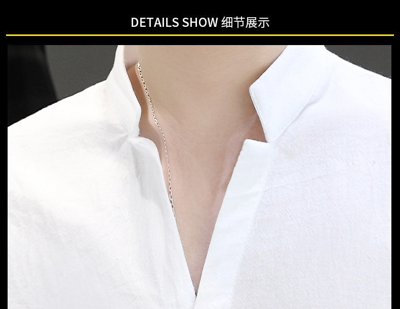 면 및 리넨 세븐 슬리브 셔츠 남자의 여름 유행 수직 칼라 핸즈섬 셔츠 남자의 하이 퀄리티 중간 소매 독특한 한국식 셔츠스토어 가기