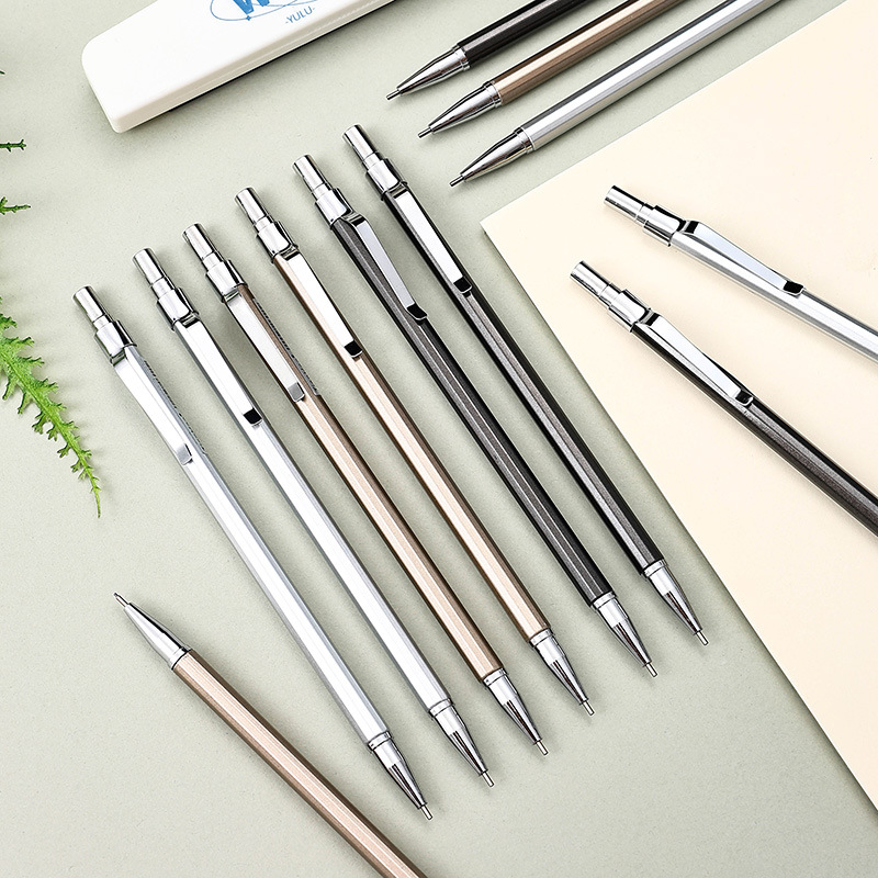 6901 소년과 소녀 금속 학생 쓰기 도구 샤프 펜슬 0.5 간단한 사무실 자동 연필 상품스토어 가기