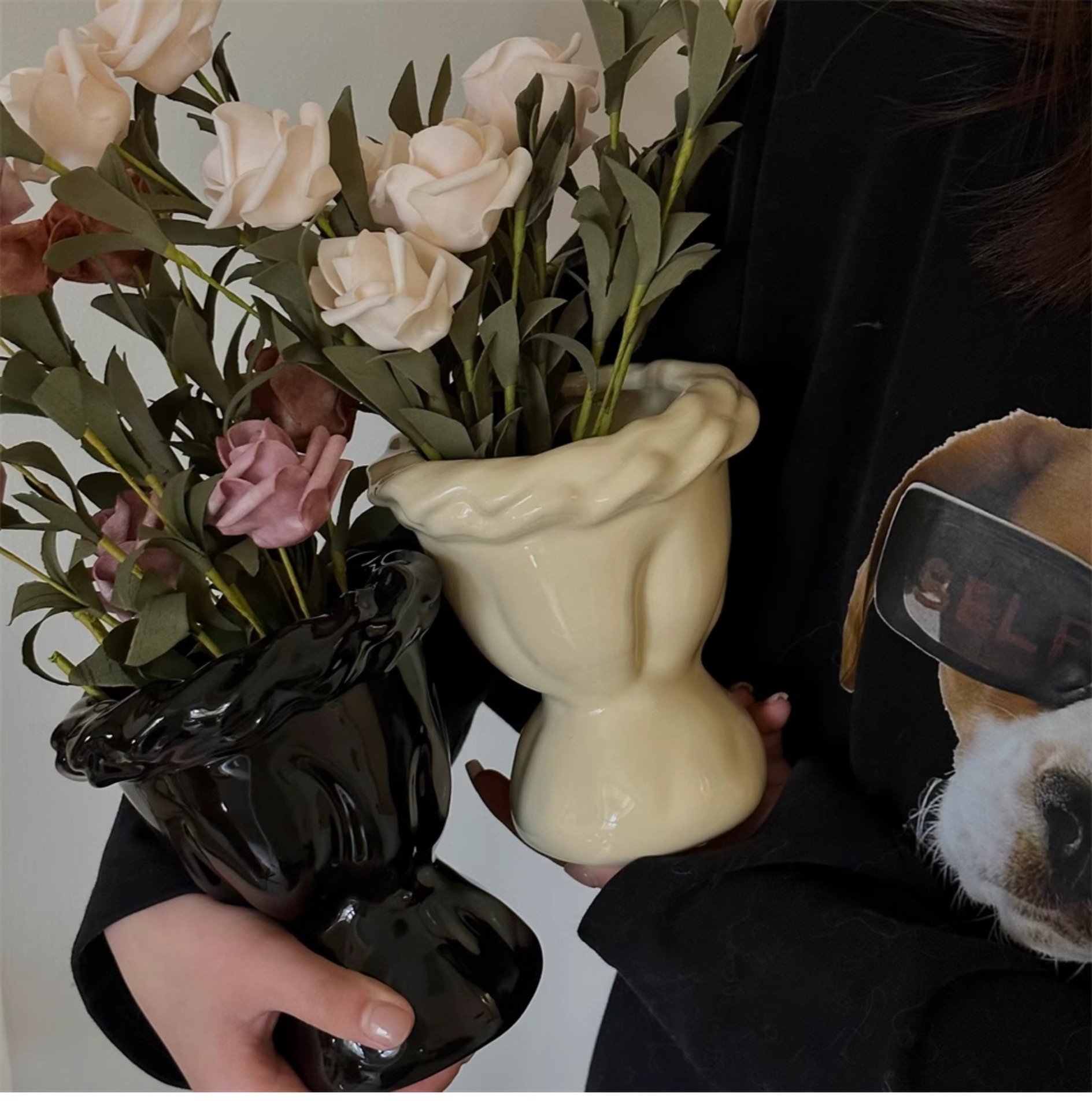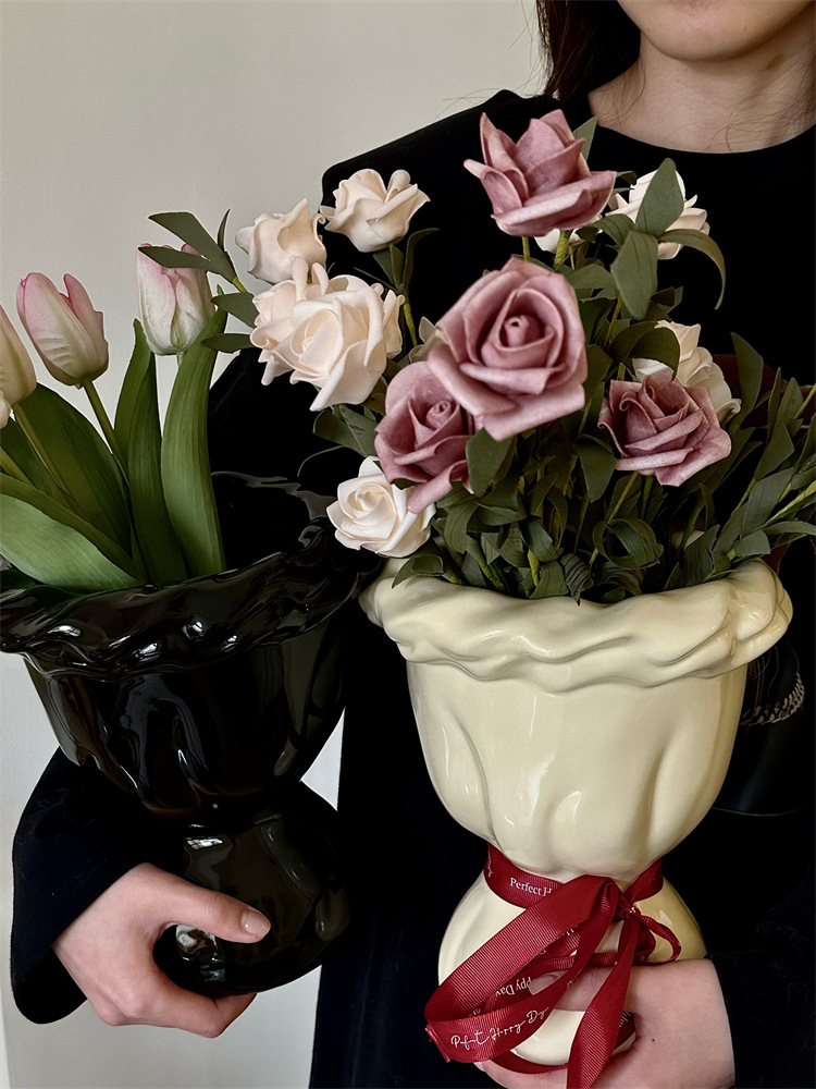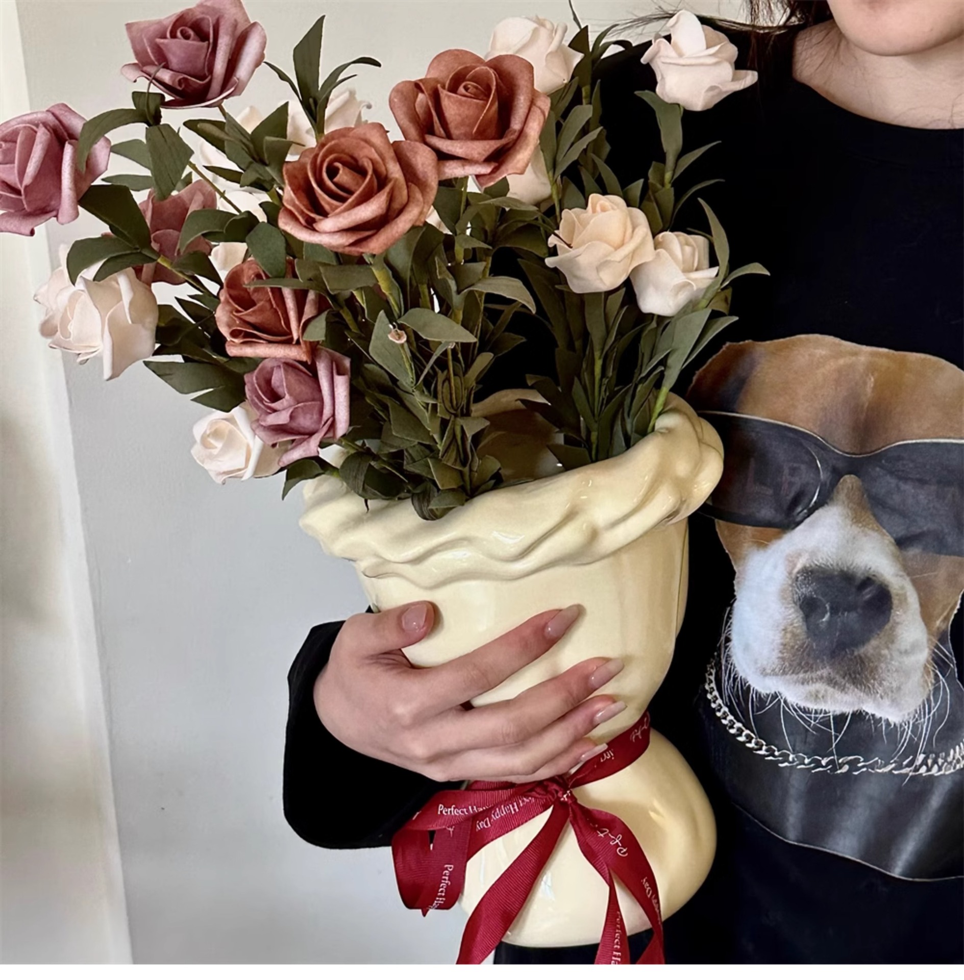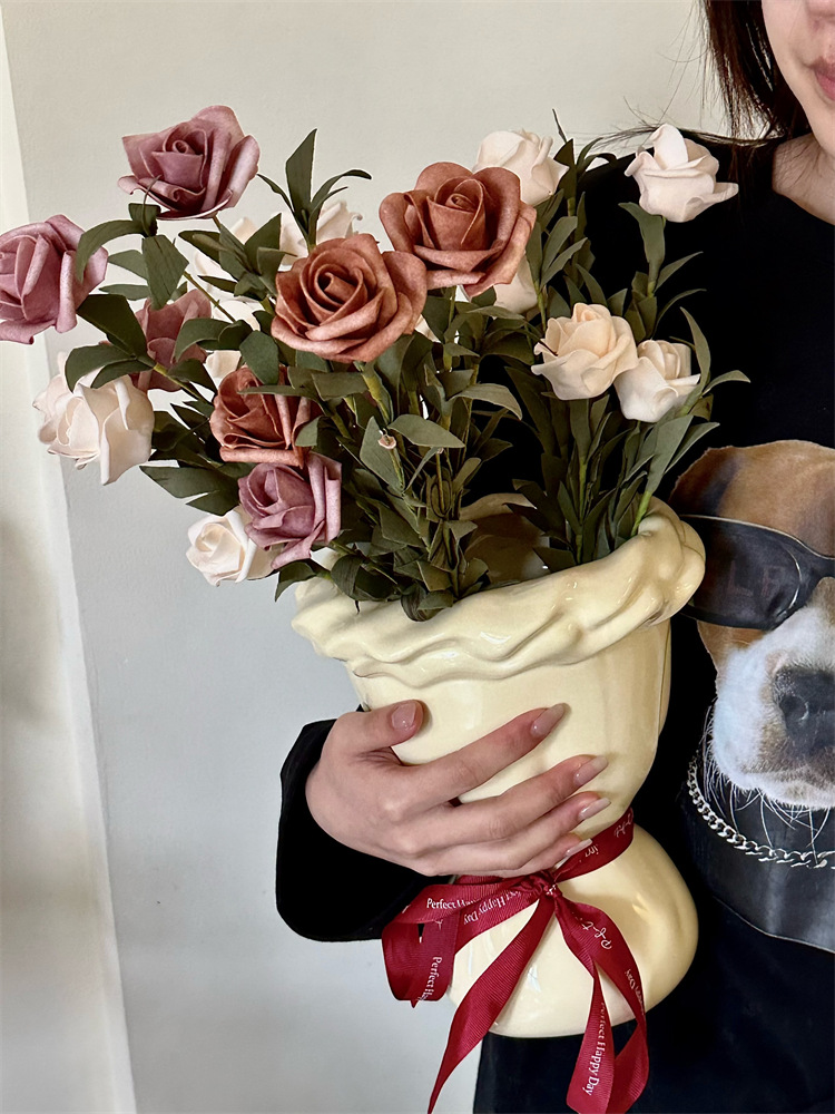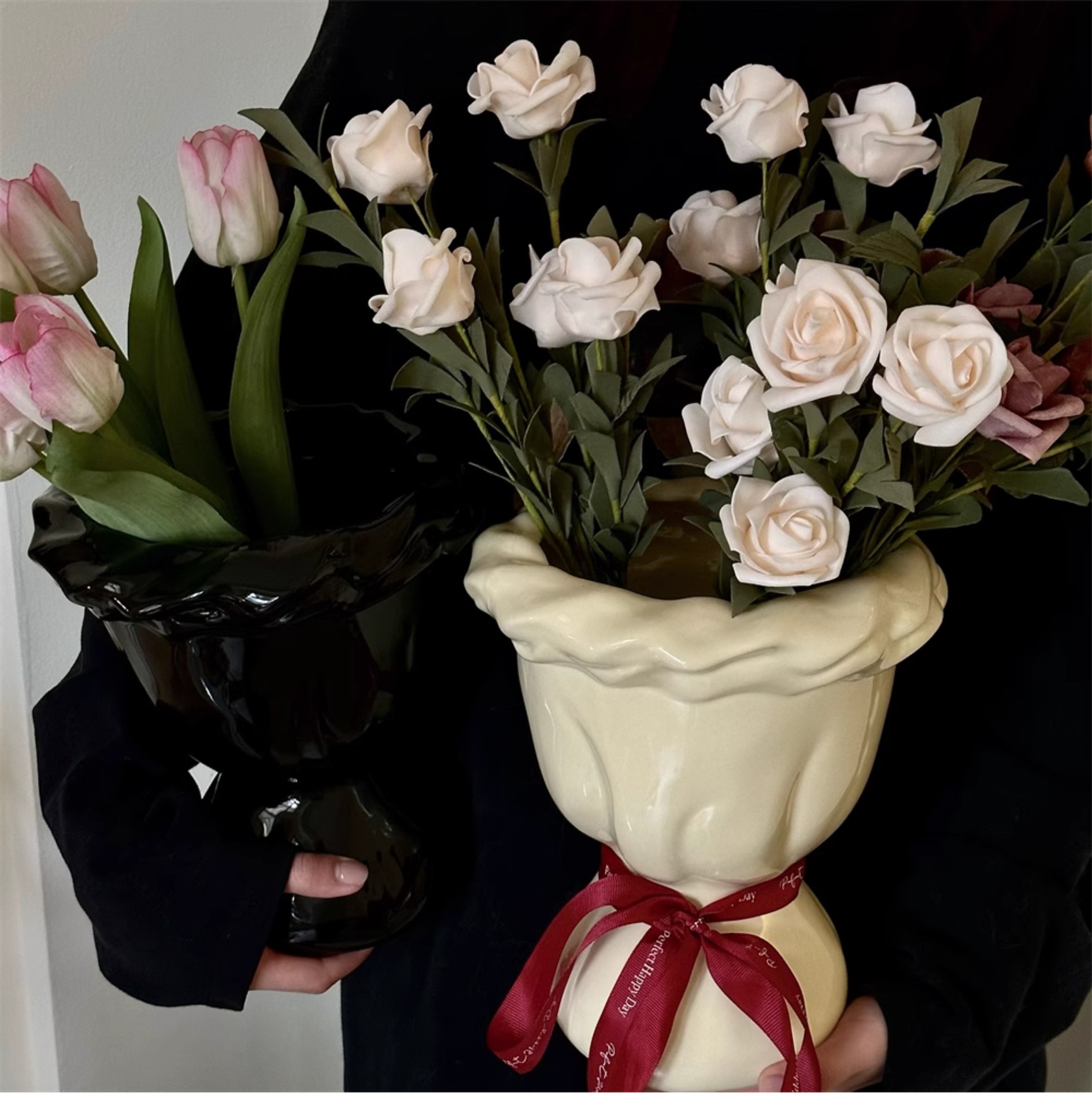 Ins 프렌치 크림 스타일 고급 스타일 라이트 럭셔리 세라믹 꽃병 맞춤형 꽃-빈티지 수경 거실 식탁 장식품